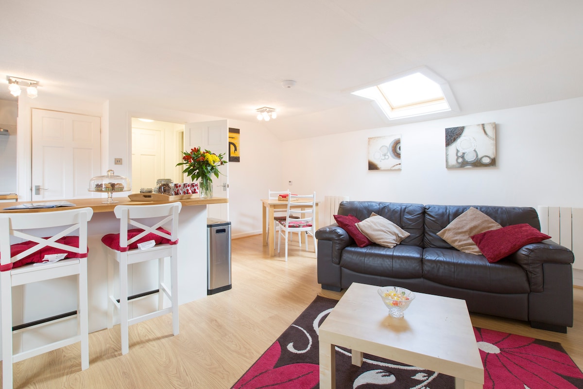 Sjálfstæð, fyrsta hæð, íbúð í 200 ára gömlum bústað. 1 svefnherbergi í boði sem superking rúm eða tvö rúm. Aðskilin stofa með eldhúskrók, örbylgjuofn/ofn/grill, helluborð, brauðrist, ketill og ísskápur í fullri stærð. Baðherbergi með sturtu. Ókeypis WiFi. Einkabílastæði utan vegar fyrir utan bústaðinn. Öruggt bílskúrsrými í boði gegn beiðni, til að læsa reiðhjólum, veiðitækjum, golfkylfum o.s.frv. Setja í fallegu, rólegu, þorpi með tveimur krám og kaffihúsi í göngufæri.