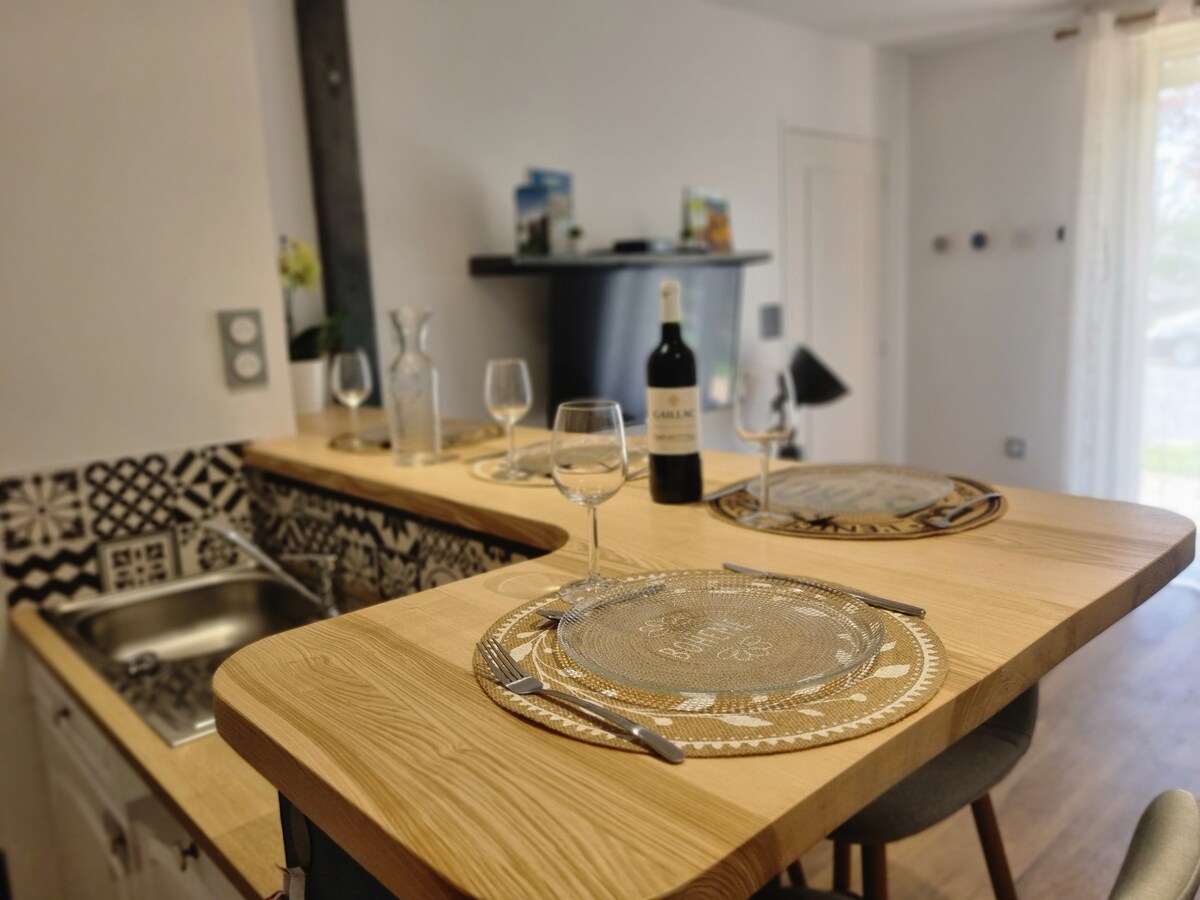 Njóttu nýs, stílhreinna og á frábærum stað. Þetta endurnýjaða T2 samanstendur af svefnherbergi, stofu/borðstofu, eldhúsi og sturtuklefa með salerni. Staðsett í 15 mínútna göngufjarlægð frá dómkirkjunni, 5 mín frá leikvanginum og þú getur notið allra þæginda. Starfsmaður eða gestur, þú ert með sérinngang og ókeypis bílastæði. Sé þess óskað: - Möguleiki á að skýla 2 hjólunum þínum í lokuðum bílskúr. - Setja upp og undirbúa annað rúm (ef 2 aðskilin rúm).