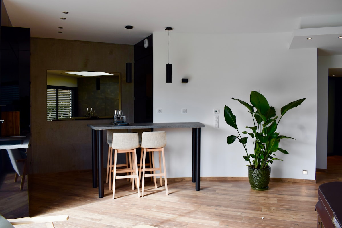 Au Creux de l 'Areuse, þema íbúð: ✈️ Iðnaðarferðir 🖤🧳 Farðu um borð og láttu þennan stað koma þér á óvart í sínum einstaka heimi. Fullkominn staður fyrir þig til að hvíla þig nálægt mörgum athöfnum á Val-de-Travers svæðinu.🌳🏘: 50m af fallegum gönguleiðum ⛰🗺 700m frá lestarstöðinni 🚉 1 km frá via ferrata 🧗🏼♂️ 2 km frá Asphalt Mines ⛑🔦 3 km frá absintheria 🍾🥂 5 km frá Gorges de l 'Areuse 🏞 7 km frá Creux du Van 📸🇨🇭 23 km til Neuchâtel borgar🏢🌃