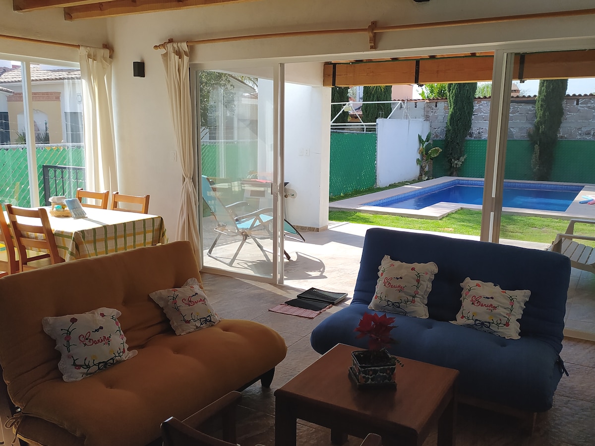 Flott hús í 10 mínútna fjarlægð frá Tequisquiapan og 15 frá Peña de Bernal og í 5 mínútna fjarlægð frá Ezekiel Montes. Fyrir framan Viñedos la Redonda og í 15 mínútna fjarlægð frá Freixenet-vínekrum. Góð og hlýleg sundlaug. Hér er pool-borð og foosball-borð ásamt 65"snjallsjónvarpi, DVD-diski með bláum geislum, tveimur svefnherbergjum með fullbúnu baðherbergi og bílastæði fyrir fjóra bíla. Það er með garðsett og grill.