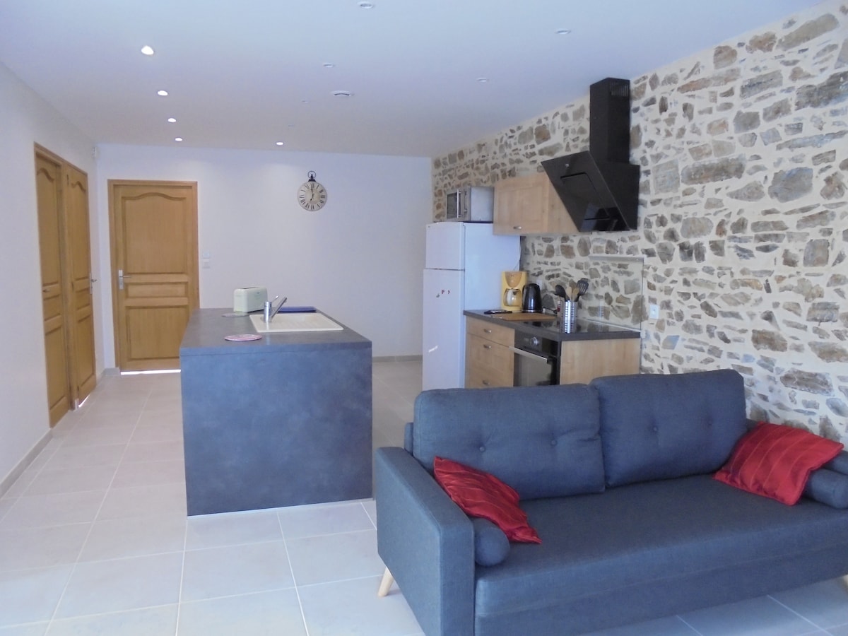 Þessi íbúð á jarðhæð er frábærlega staðsett nálægt miðborginni og rúmar allt að 4 manns vegna tveggja svefnherbergja. Hentar fjölskyldum í fríum og getur einnig hentað, þökk sé þægindum (eldhúsi, þvottavél...) og þægindum (ókeypis bílastæði í nágrenninu, 1 km frá lestarstöðinni, 1 km frá leikhúsinu...) til fólks sem ferðast vegna vinnu. Rúmföt, handklæði og tehandklæði fylgja og þrif eru innifalin.