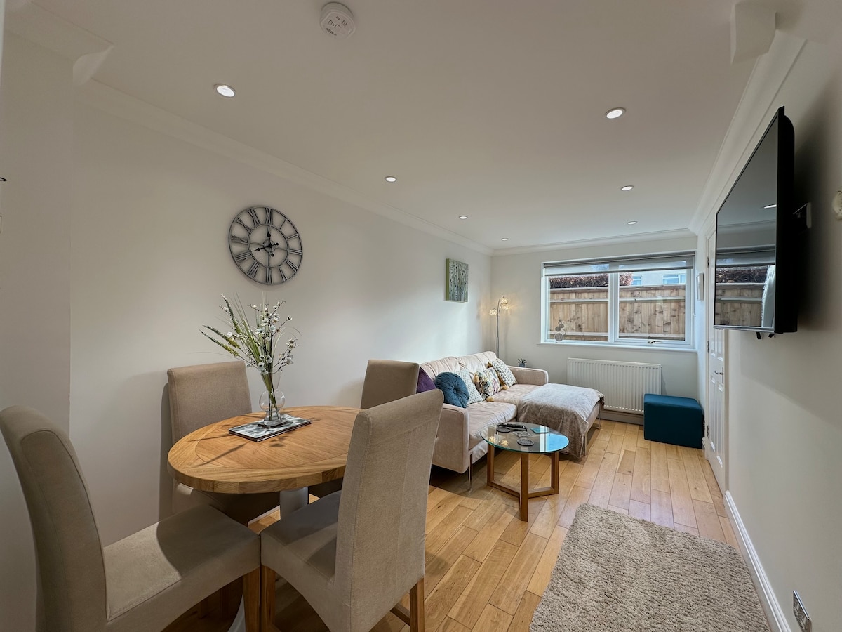 Lúxusviðbygging við jaðar Chilterns, staðsett í friðsælli sveit sem hægt er að njóta frá heita pottinum, en aðeins 5 mínútur til M40, 15 mínútur til Oxford Park & Ride og 15 mínútur til stöðvarinnar með lestum til London sem taka 45 mínútur. Þetta er fullkominn staður til að slaka á með notalegri setustofu, viðareldavél, sérhönnuðu eldhúsi og gólfhita. Á efri hæðinni er ofurkonungsrúm, setusvæði, lúxus votrými með gólfhita, svalir og nuddpottur.