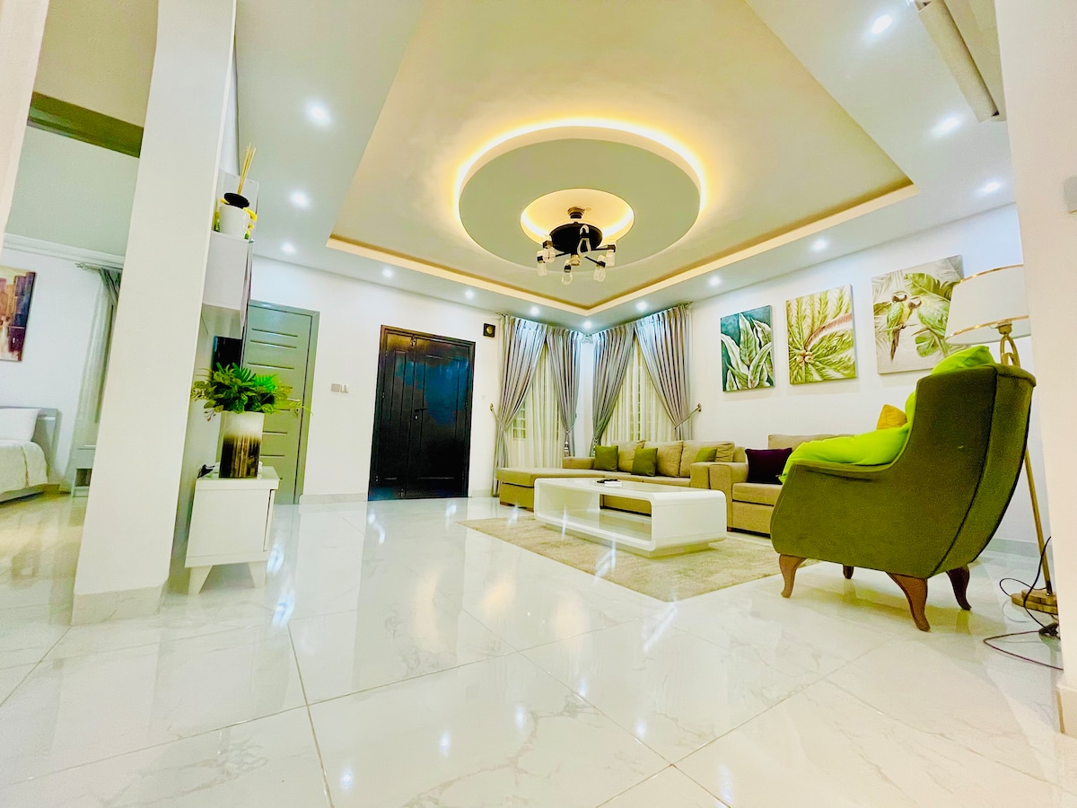 Komdu með alla fjölskylduna í skemmtilega og afslappandi dvöl eða komdu ein/n til að njóta friðsæls afdreps í hjarta Accra. Þessi glæsilega tveggja herbergja íbúð er staðsett í friðsælli samstæðu með gróskumiklum gróðri og sundlaug sem býður upp á fullkomna blöndu þæginda og þæginda. Queen-rúm Heitt vatn og loftræsting Varaafl allan sólarhringinn Háhraða þráðlaust net og streymisþjónusta Líkamsræktar- og einkaþjónusta Nálægt veitingastöðum, verslunarmiðstöðvum og setustofum Bókaðu núna fyrir fullkomið frí!