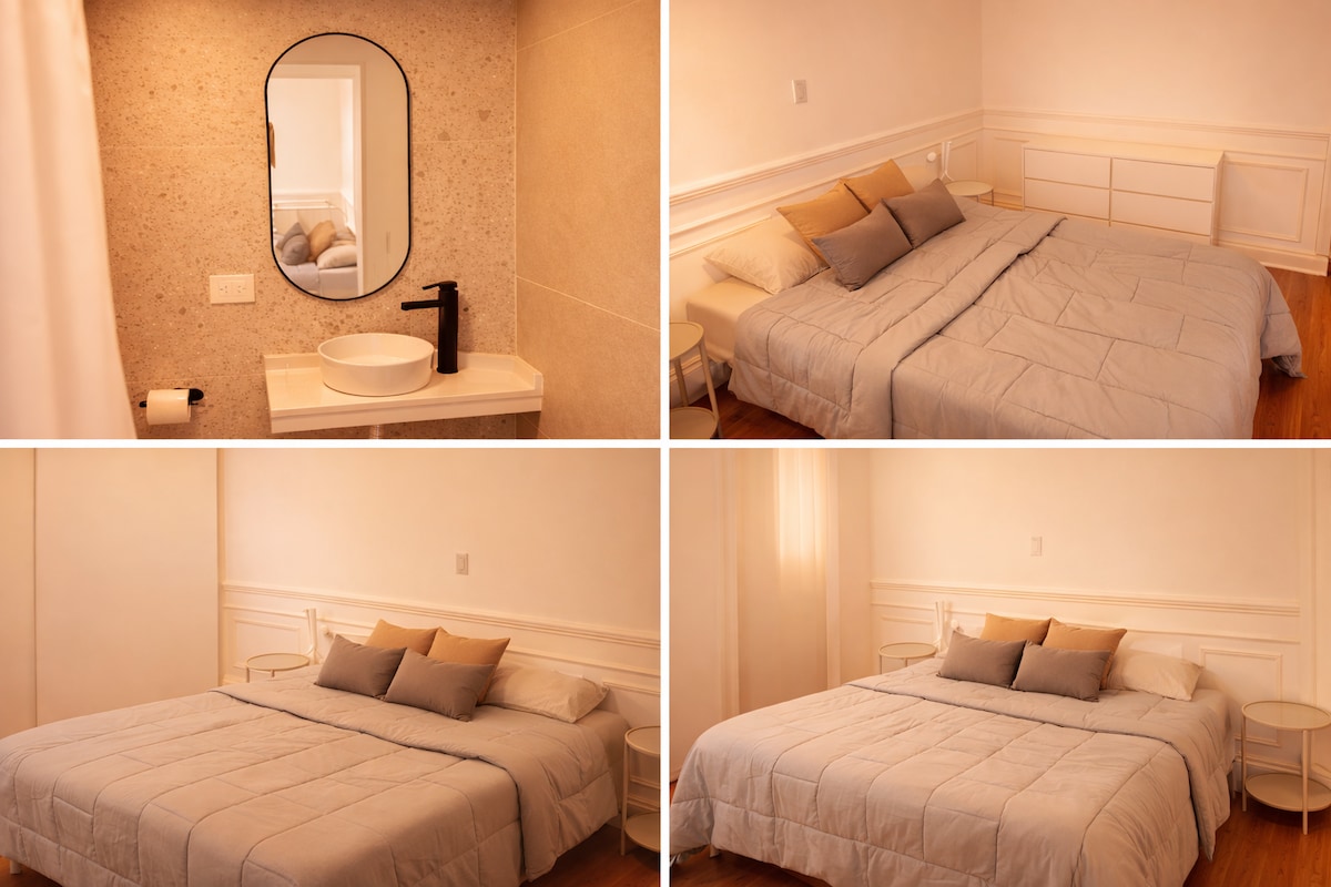 Aftengdu áhyggjur þínar í þessu rúmgóða og friðsæla rými. Nálægt börum, vinsælum veitingastöðum, verslunarmiðstöðvum, rútum og metrum. Þar er allt sem þú þarft fyrir fullkomna dvöl: - Frábært þráðlaust net -Sommier queen -Loftræsting -TV '43 -Sofa - Borðstofuborð/vinnurými -Örbylgjuofn, rafmagns anafes pava og rafmagns brauðrist -Kæliskápur -Amplio walk-in closet with guarded space - Sérbaðherbergi með rúmfötum - Verönd með borði og stólum til að njóta útivistar