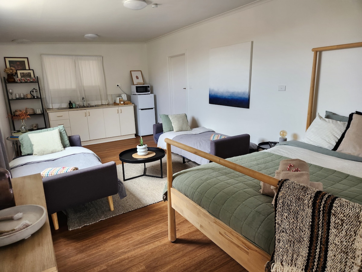 Welcome to Studio Springs. A cosy, unique studio in the picturesque town of Clifton Springs. Located in the heart of the Bellarine Peninsula; this little studio is not only minutes walk from beautiful secluded beaches… but just a short drive to local wineries/distilleries, famous surf beaches and on the doorstep of the famous Great Ocean Road.
