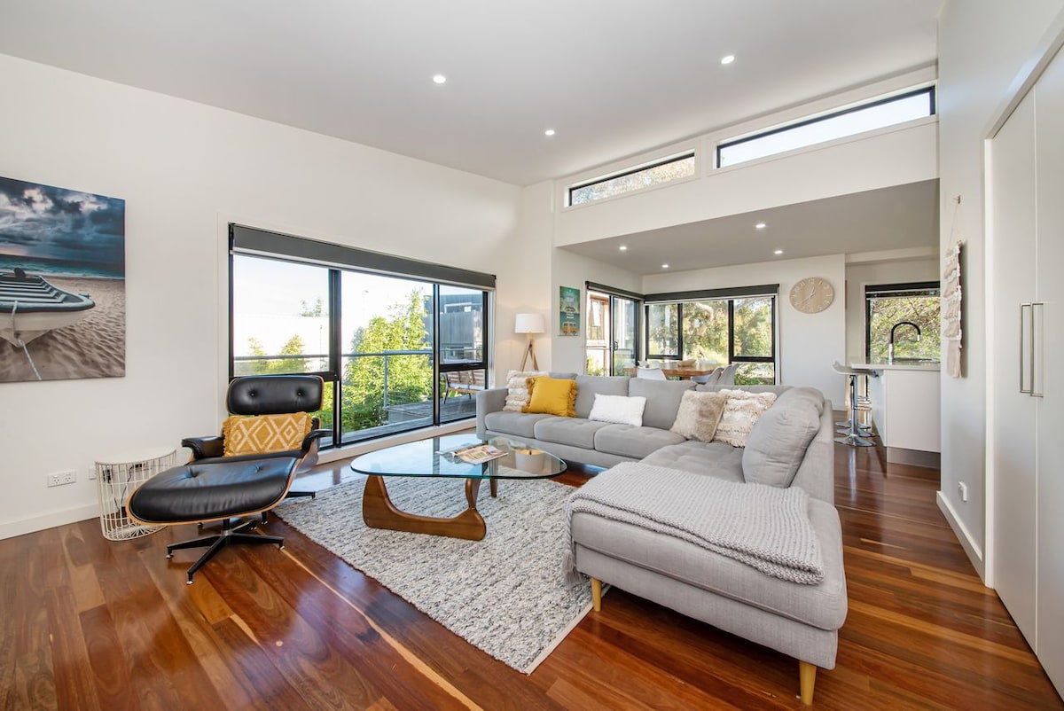 Walk in and instantly relax! If it's 'Surfs up' in summer or 'Cozy up' for winter with our toasty Gas Fireplace, here is your perfect relaxed, carefree and stylish holiday in the idyllic Surfcoast... A short stroll to surf beach, shops, Barwon Heads River, playgound, restaurants, breweries, cafes. Or short drive to golf courses, wineries, Adventure Park and other near coastal towns. Orton St Stays is a 3 bedroom single story townhouse with garage offering a holiday for couples or families.