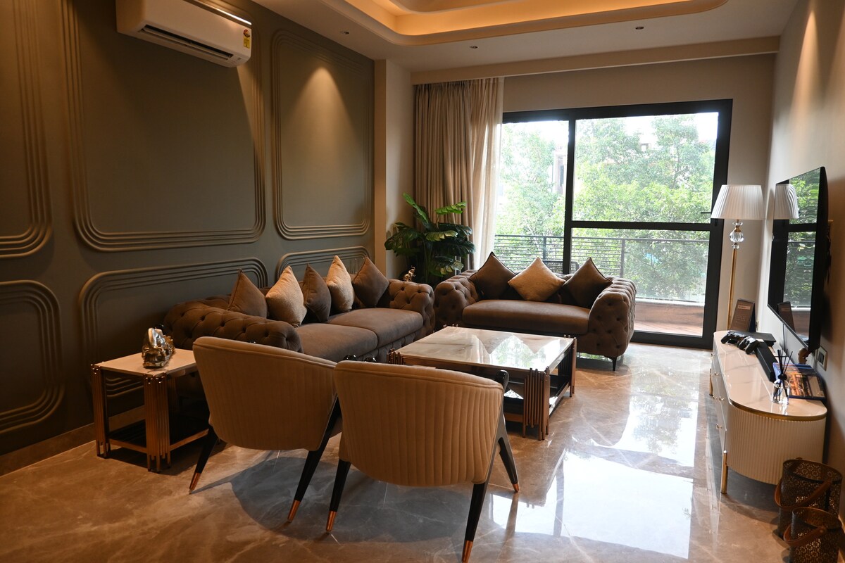 Nútímaleg lúxusíbúð í hjarta Suður-Delí með risastórri verönd og útsýni yfir almenningsgarðinn, bar undir berum himni og pergola. Í húsinu eru margar upplifanir eins og þær eru skráðar -65 tommu sjónvarp með allri ott streymisþjónustu. - Fullbúið eldhús með OTG, uppþvottavél, vatnshreinsiefni -Lofthreinsitæki. - Morgunverður sé þess óskað - Heimagerðar máltíðir í boði gegn gjaldi. - vel upplýst, rúmgóð ogfullkomlega loftkæld íbúð. Reynsla af því að taka á móti gestum erlendis frá. Tvö svefnherbergi með pláss fyrir 4 til 5 gesti.