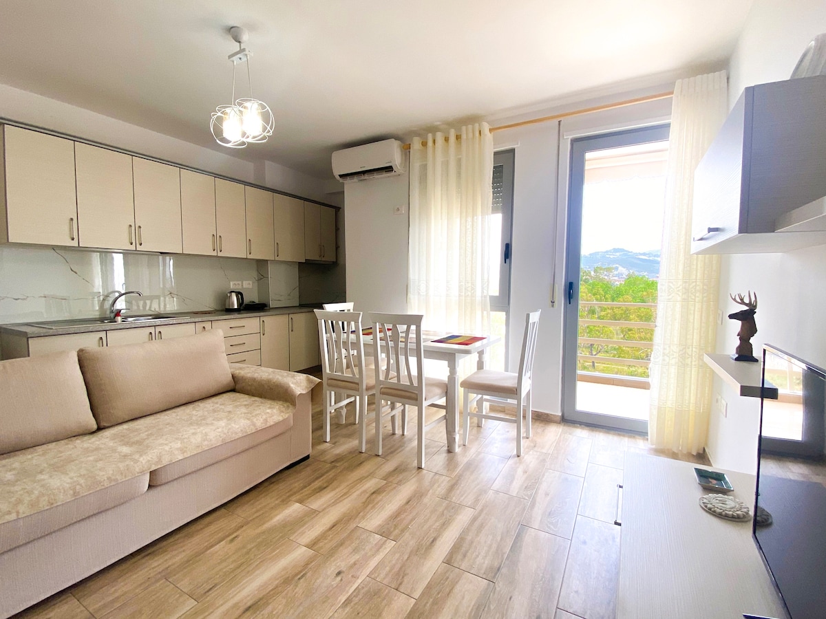 Verið velkomin í fallega stúdíóið okkar á hæðinni sem er staðsett við „Uji I Ftohte“ í Lungomare. Njóttu fullbúins eldhúss, notalegrar svefnaðstöðu, nútímalegs baðherbergis og rúmgóðra svala með mögnuðu sjávarútsýni. Allar strendur, kaffihús, markaðir og veitingastaðir eru í innan við 5 til 15 mínútna göngufjarlægð. Strætóstoppistöðin, sem er aðeins í 4 mínútna fjarlægð, býður upp á greiðan aðgang að líflegri miðborg Vlora fyrir aðeins 35 sent. Sjálfsinnritun og útritun gera dvöl þína enn þægilegri.