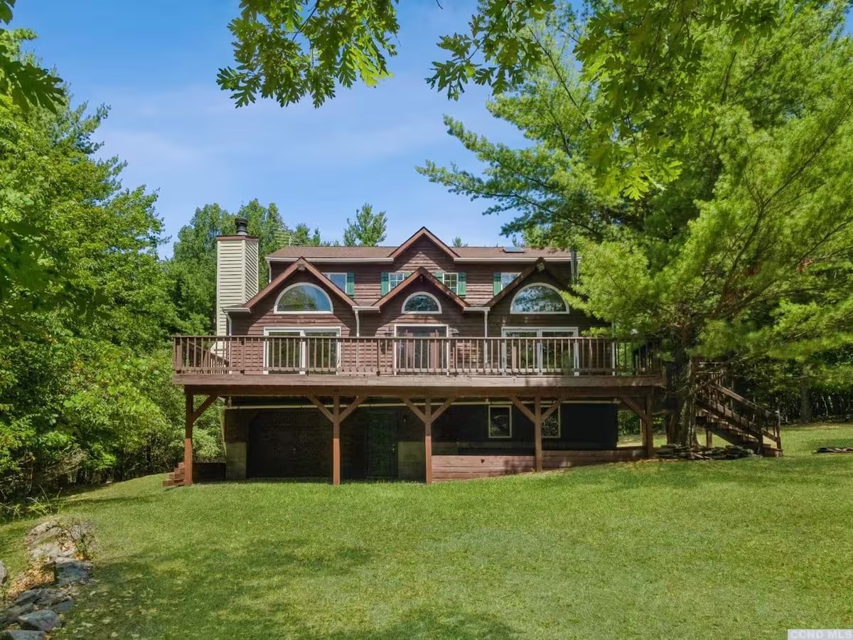 A nature-lover's oasis, this 3-bedroom/4-bed/2-bath log-built chalet with contemporary furnishings is perched high along the northernmost edge of the Catskill Mountains offering unforgettable panoramic views from inside and out across 22+ secluded acres. Due to its proximity to hiking trails, lakes, rivers, breweries and wineries as well as Windam (7 mi), Hunter (16 mi), Catskill (26 mi) and Hudson (29 mi), this is the ideal location from which to explore the best the Catskills has to offer.