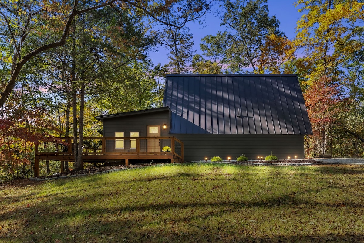 Fullkomið rómantískt frí! Slakaðu á í heita pottinum okkar um leið og þú hlustar á vatnið flæða. Ljósin umlykja smáhýsið okkar til að skapa stemningu. Slappaðu af á daginn í sólinni. Viltu gista inni og borða? Njóttu grillsins okkar og borðsins úti eða eldaðu inni. Viltu fara út að borða? Aunt Sue 's and Pumpkintown General store are both so close. Báðir eru með gómsætar heimagerðar máltíðir! Victoria Valley Vineyards er fullkominn staður fyrir vínsmökkun. Við útvegum áralangan þjóðgarðspassa. Tablerock State Park er í nokkurra mínútna fjarlægð frá þér.