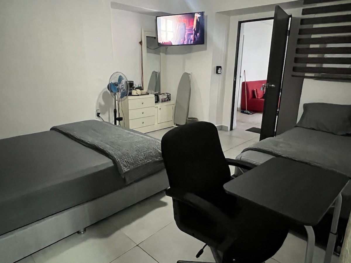 Este espacio, es excelente para estancias largas o cortas, cuenta con todo lo necesario para tu comodidad, cocina equipada, bien iluminado, son dos recamaras, en una se encuentra la cocina, estudio y televisión, tiene un balcón lleno de plantas, con una hamaca super cómoda para la siesta, un pequeño comedor. En esta recamara contamos con un futon que se hace cama matrimonial. La segunda recamara tiene unos sillones y la cama principal que es también matrimonial.