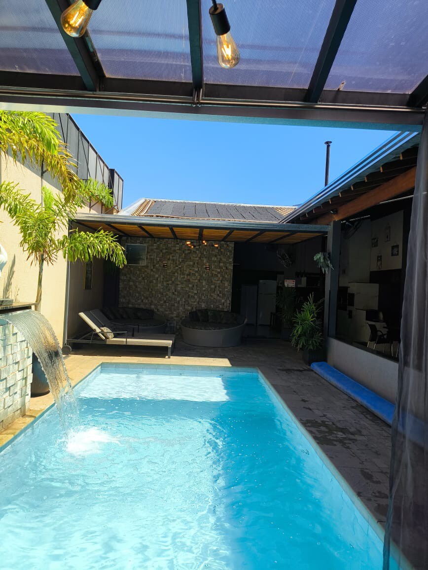 Njóttu fullkomins og þægilegs rýmis í Lins/SP! Upphitað sundlaug, sælkerasvæði með grill, búið eldhús, Wi-Fi, sjónvarp og notaleg herbergi. Rúmar allt að 10 manns með miklum þægindum. Fullkomið til að slaka á, safna fjölskyldu og vinum saman, halda veisluhöld eða njóta sérstakra daga í friðhelgi og hlýlegu andrúmi.