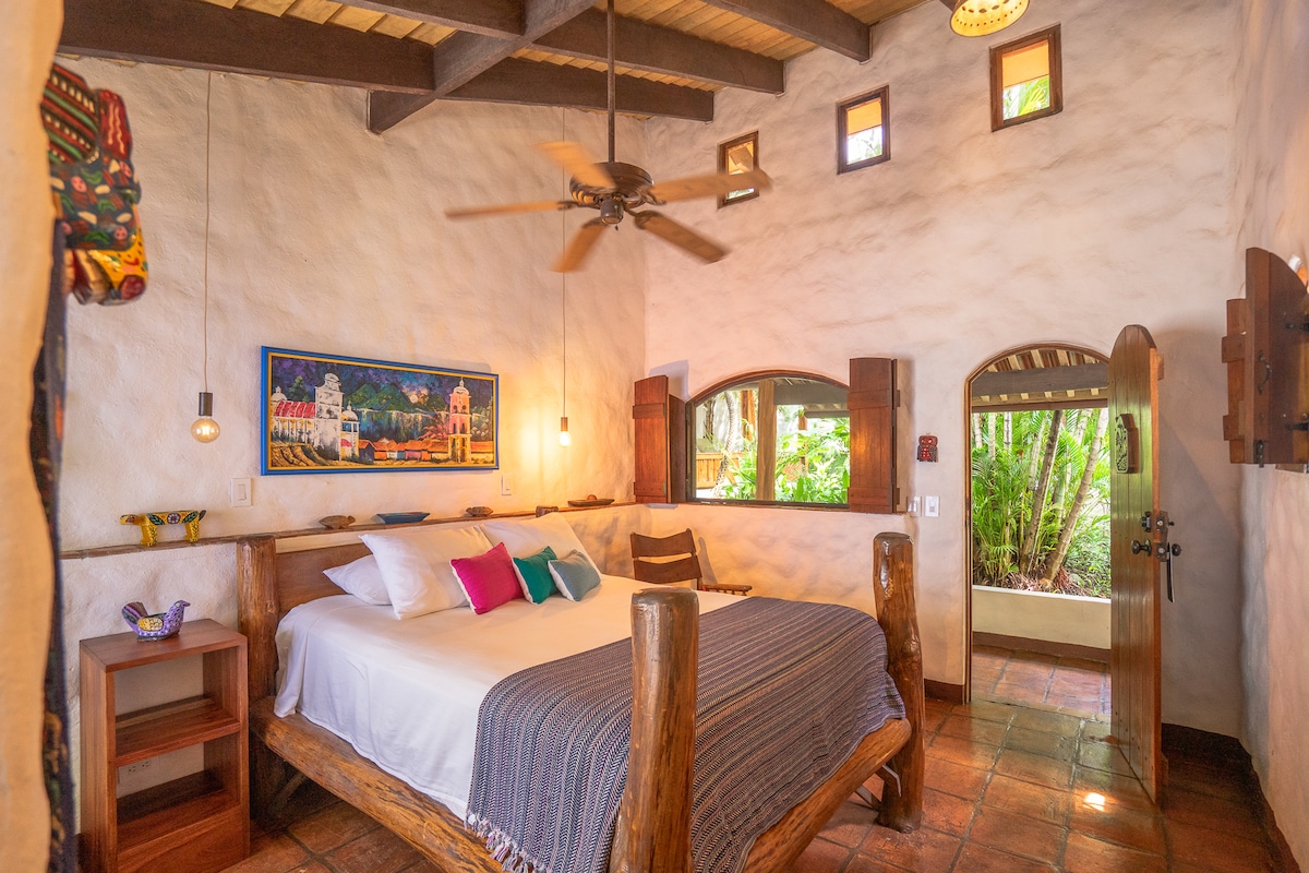 Relax in a boho-colonial hideaway in our lush 4-room hotel. This room offers a queen bed, A/C, kitchenette, outdoor porch, secure parking, fast Wi-Fi, hot water, and spa-like toiletries. Enjoy poolside lounging, complimentary snacks, and à la carte breakfast. Peaceful, cozy, and just minutes from Tamarindo’s beach, shops, restaurants and cafés. We will gladly help you coordinate special requests, transportation and activities.