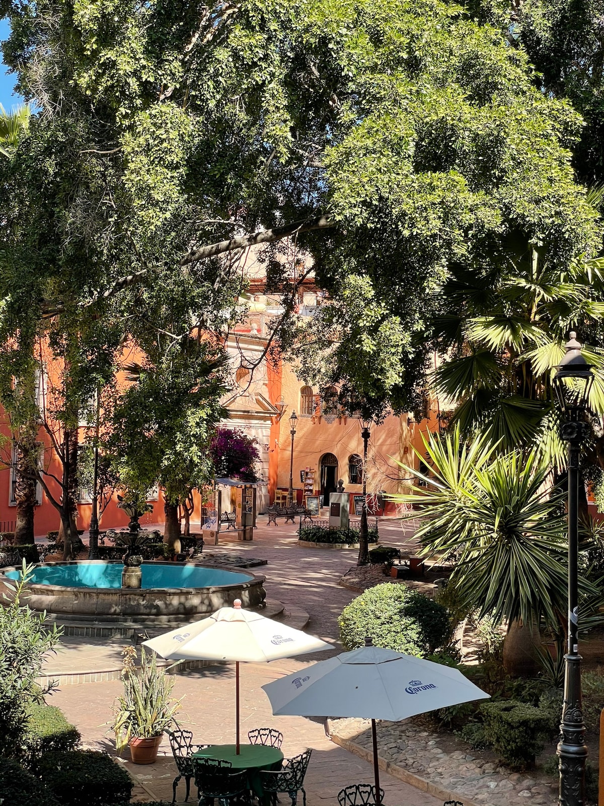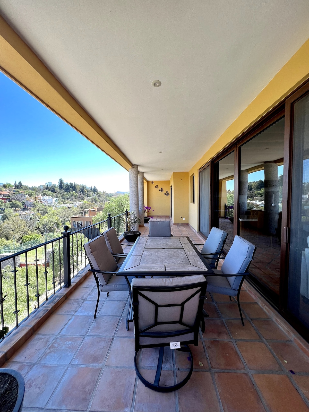 Magnificent views & location. Directly above the Parque Juarez and down from the Mirador lookout. Just a few blocks away from the main square. Our home is set behind and above another property, allowing for a tranquil and private setting, while enjoying stunning panoramic views of the center of San Miguel, its churches and the distant countryside. The four levels of this property allow for a clear definition of the space, yet terraced into one another, creating a feeling of amplitude while benefiting from lush greenery from the surrounding trees and walls covered with vines. Multiple terraces and fountains set the tone for a relaxing atmosphere in the clean bright interiors that are reminiscent of the Mediterranean. On the main level you will find the living room, dining room, and fully equipped kitchen with whole house water purification system, as well as a balcony and the guest bedroom with en suite bath. Below there is a private garden with a studio providing the perfect atmosphere for artistic creation. The master bedroom, located upstairs, is amazing and is wide and open. The centrally located king size bed faces the view, french doors and balcony. The en suite bathroom has a large shower and skylight above. Just off of the bedroom is an en-suite office providing internet and wifi throughout the house and overlooking the XVII Century Chapel of the Holy Cross of Chorro, the second most historical setting of San Miguel de Allende. Directly above the master bedroom you will find the most awe-inspiring view of San Miguel from the sunning terrace or the comfort of a large shaded terrace. Enjoy a sunset cocktail or espresso from the rooftop bar as you relax and take in the view. I will work with you on all the details prior to your arrival. Once in San Miguel, our house manager, Jose, is in town and available. Esmeralda, our housekeeper, will be by 3 times a week on Tuesdays, Thursdays and Saturdays, typically around 9 am.