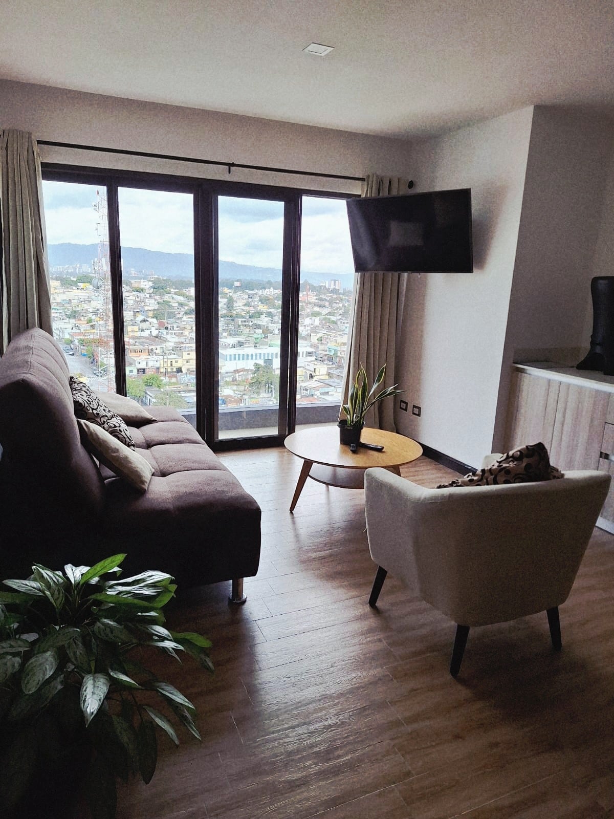 Welcome to your 'Spectacular View Cozy Haven' – a unique urban retreat on the 17th floor with breathtaking panoramic views of Guatemala City! Just minutes from the lively heart of Zone 1 (Central Park & Paseo La Sexta), this charming one-bedroom apartment offers the perfect mix of city energy and peaceful escape. Enjoy cozy evenings with complimentary Netflix, making it the ideal spot to unwind after a day of exploring.