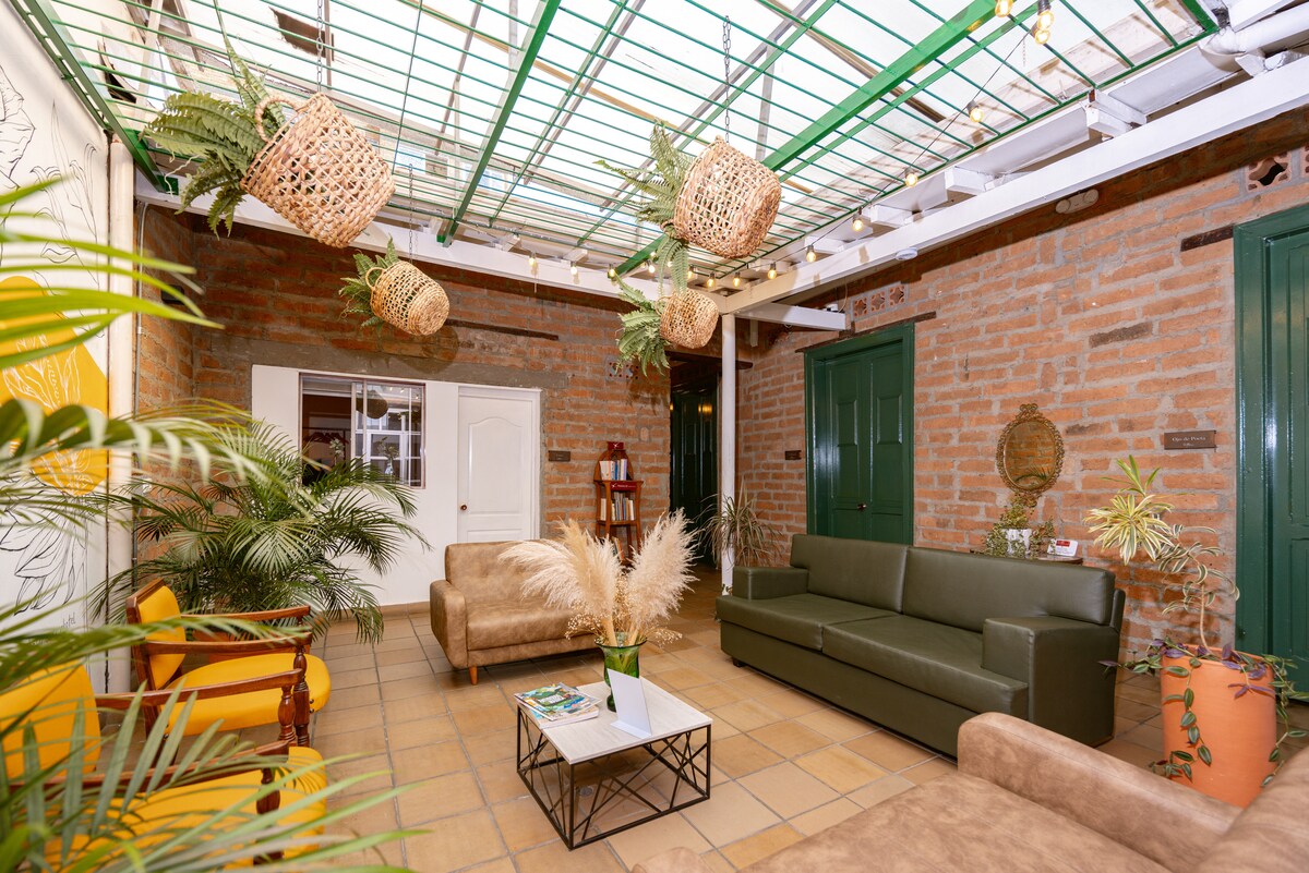 Welcome to Casa ROMERO IN FLOR, where Nature, Art and Literature meet. Kynnstu vin í hjarta Medellin. Einkasvítan okkar er staðsett í hönnunarhóteli, galleríi og bókabúð með heillandi arkitektúr með aðeins þremur sérherbergjum fyrir gesti okkar, umkringd náttúru, mósaíklist og úrvali notaðra bóka svo að þú getir misst þig — og fundið þig — á meðal blaðsíðna, plantna og listaverka.