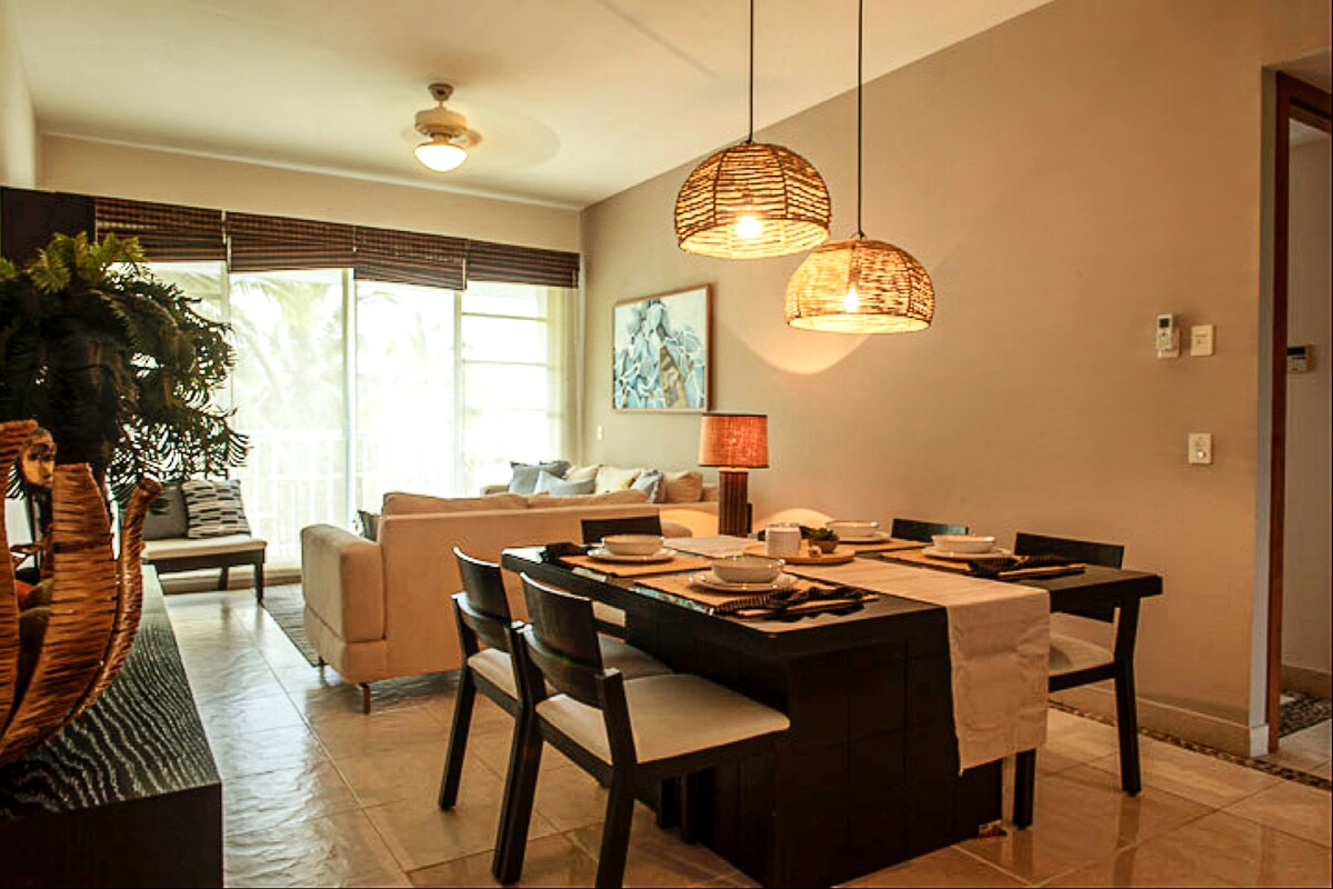 Íbúðin er staðsett á demantasvæðinu, niðurhólfunin er ný, mjög hljóðlát og örugg allan sólarhringinn, komdu og njóttu góðrar hvíldar í fylgd fjölskyldu þinnar, 100% tryggð. Mælt er með því að kaupa það sem er nauðsynlegt fyrir búrið þitt í Chedraui þar sem í íbúðinni er íbúð sem selur aðeins það sem er nauðsynlegt eins og gos, vatn, smákökur, safa o.s.frv. Strandklúbburinn er í 10 mínútna fjarlægð frá íbúðinni.