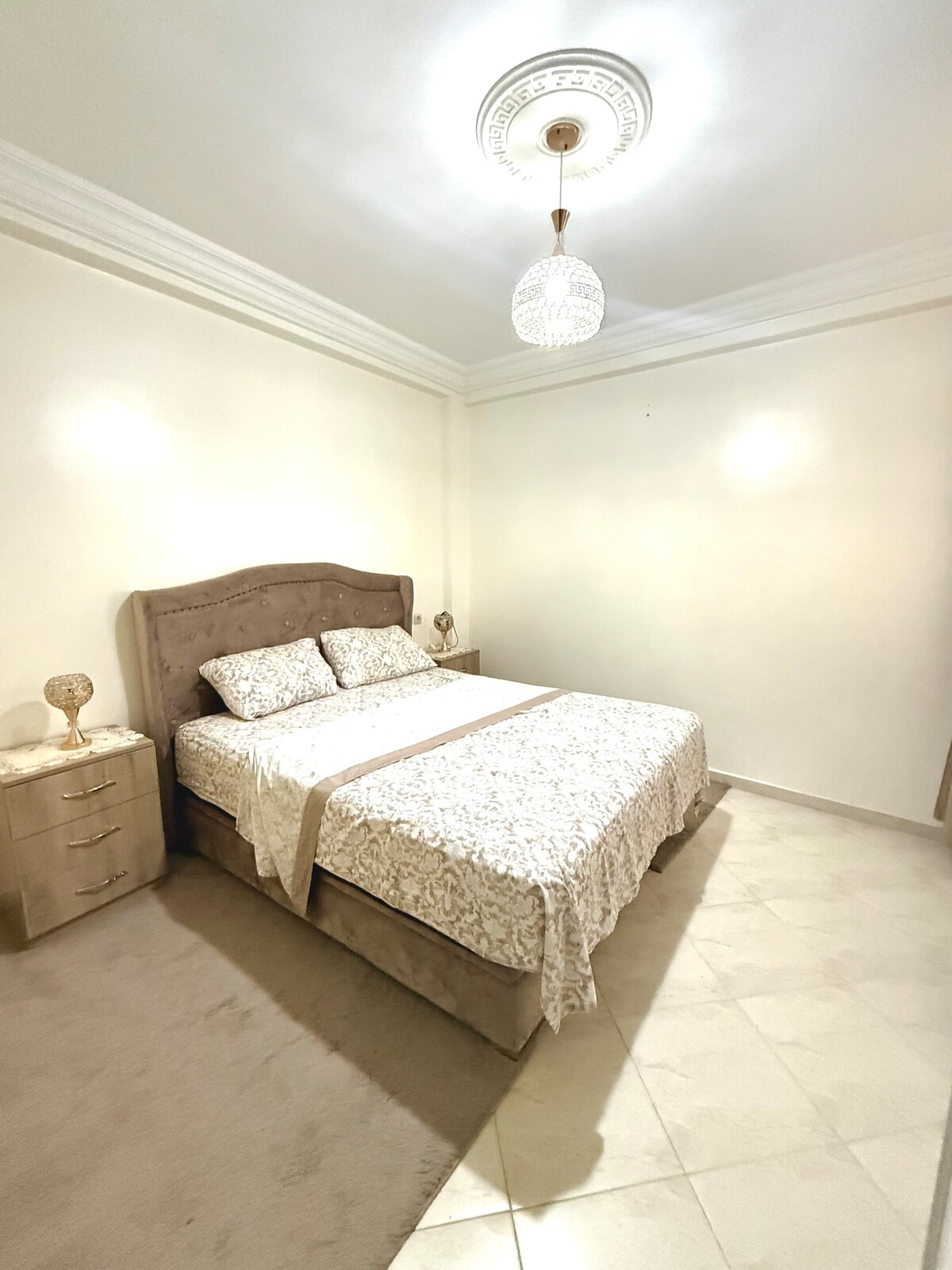 ✨️LE GLORIOUS✨️ Détendez-vous dans ce logement calme et élégant. Joli appartement à deux pas du GRAND STADE de Tanger Agréable et apaisant, l’appartement se compose d’un salon élégant ensoleillé avec une chambre (lit neuf 180) La salle de bain est propre et fonctionnelle Parfaitement équipé, calme et imprégné d'une ambiance cocooning, ce sera le point de chute idéal des voyageurs d’affaires et d’agrément