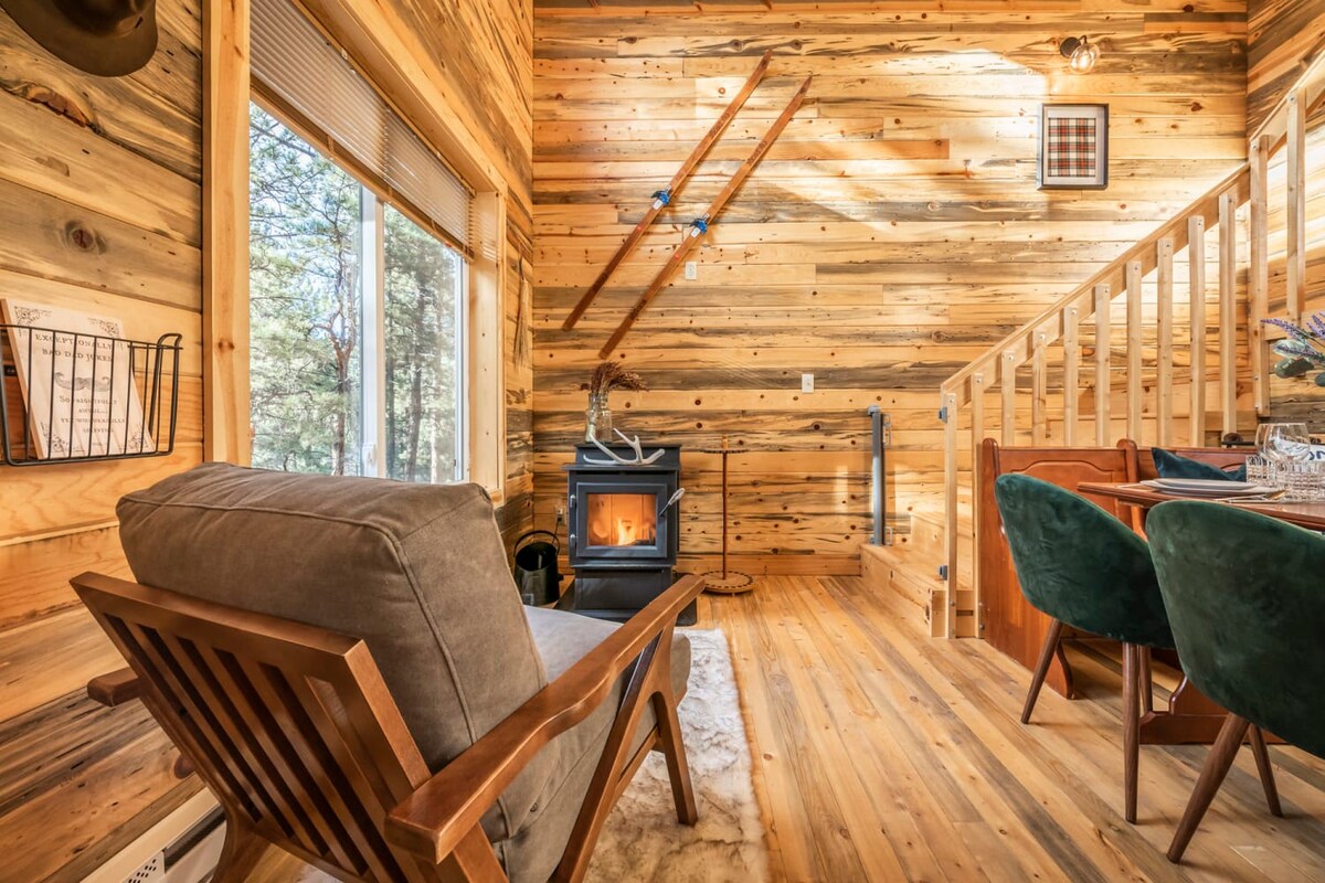 Slepptu borginni í þessum fallega A-ramma með skandinavískum innblæstri. A-ramminn er á 2 skógarreitum með útsýni yfir Pikes Peak og hefur nýlega verið endurbyggður með úrvalsþægindum, þar á meðal heitum potti, norskum gasarinn, vönduðum rúmfötum og sturtu sem líkist heilsulind. Slakaðu á á stóra þilfarinu og hlustaðu á uppáhalds tónlistina þína í Sonos kerfinu okkar, spilaðu leiki með vinum, lestu, dagsferð að vötnum og gönguferðum, búðu til minningar, endurnærðu þig og slakaðu á í þessari viljandi upplifun.