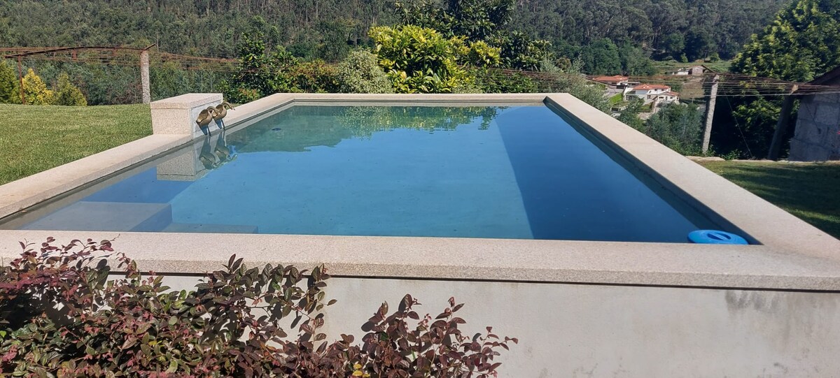Sveitahús með garði, landbúnaðarsvæði og Chestnut Tree Forest. Kyrrð og friðsælt andrúmsloft í sveitinni. Engir nágrannar. Um það bil 10 km frá borginni Guimarães - Heimsminjaskrá Menningarmálastofnunar Sameinuðu þjóðanna og upprennandi menningarborg Portúgal. Hús fyrir 2 - 10 Pax. 3 svefnherbergi (1 með einkabaðherbergi), stofa, borðstofa, skrifstofa, 3 baðherbergi með sturtu og 2 sjálfstætt WC. 200 m2 Sumarhúsalóð, + Garður: 1000 m2. Hús byggt 2004. Aðbúnaður: 3 hjónarúm, 1 svefnsófi/svefnsófi. Þvottavél, svefnherbergi/baðherbergi/eldhús textílefni fylgja, frystir, sjónvarp, bílskúr, ofn, örbylgjuofn. Kæliskápur, hitun, eldiviður, Sattelite-sjónvarp - Fullbúið eldhús. Eindregið er mælt með persónulegum samgöngum þar sem næstu almenningssamgöngur eru í um 1 km fjarlægð. Auðvelt og hratt aðgengi frá alþjóðaflugvellinum í Oporto og að borgum í nágrenninu: Vizela, Guimarães, Oporto og Braga.