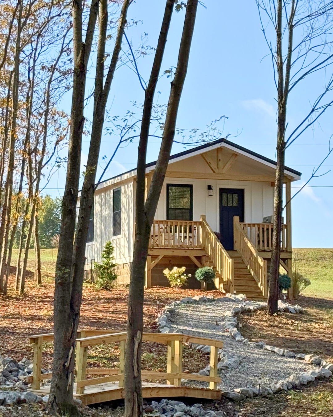 Listen to the birds sing as the walkway guides you to your quaint cottage getaway. Take in nature, as you’re surrounded by trees, near our sweet chicken coop and a creek that flows down from the deck - all while only 10min from town. Special touches were added of Kentucky Derby photos, books, kitchenware, Bourbon Trail glasses and bourbon barrel heads with local distilleries. The dining table top is even made of wood from Shelby County’s own Bulleit Distilling Company.