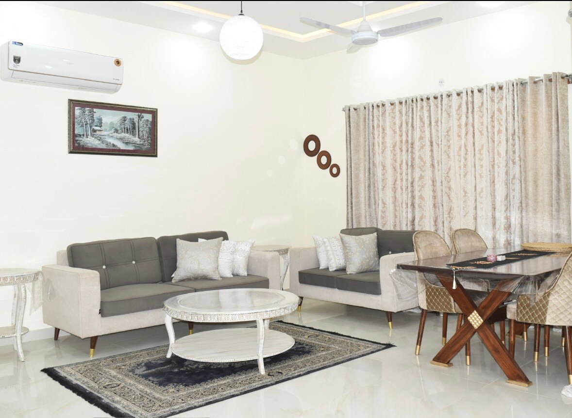 Gistu í þessari lúxusíbúð með einu svefnherbergi og eldhúskrók við GT Road, beint á móti Giga Mall, sem býður upp á þægindi, stíl og óviðjafnanlega þægindum. Njóttu öryggis allan sólarhringinn og stöðugra *** UPS-öryggisafrita *** svo að dvölin verði áhyggjulaus. Íbúðin er með nútímalegri innréttingum og þægilegum aðgangi að helstu áhugaverðum stöðum, veitingastöðum, kaffihúsum, matvöruverslunum og samgöngum í Islamabad. Fullkomið fyrir viðskiptaferðamenn, fjölskyldur og gesti í fríi sem leita að hreinni, úrvalsíbúð í miðbænum með öllum nauðsynjum.