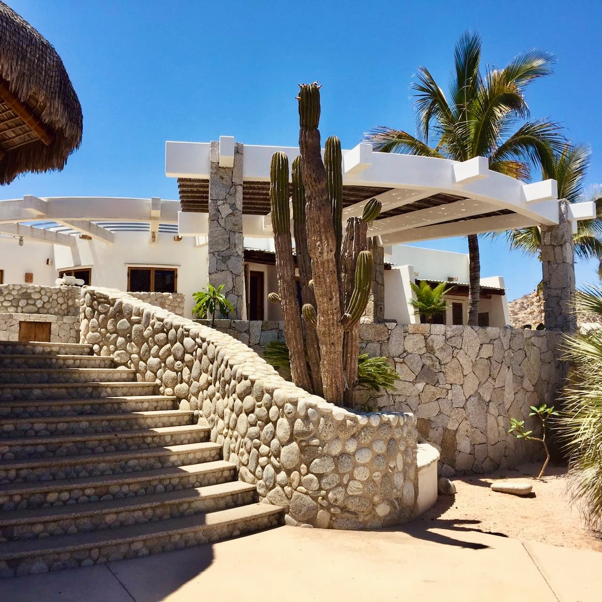 „Casa Mar“ er einstakt heimili í mexíkönskum stíl með bogadyrum, staðbundnum gólfflísum og viðarvinnu alls staðar og nútímalegt með öllum þægindum. Sjávarútsýnið við inngang hússins tekur andanum úr þér. Öll þrjú svefnherbergin eru með king-size rúmum og baðherbergjum með sturtum. Veröndin býður upp á afdrep til sólböðunar og afslöppunar í heita pottinum. Njóttu þriggja borðsvæða utandyra, þar á meðal á þakinu. Á neðri veröndinni er bar og king-size rúm fyrir góða síestu eftir hádegi.