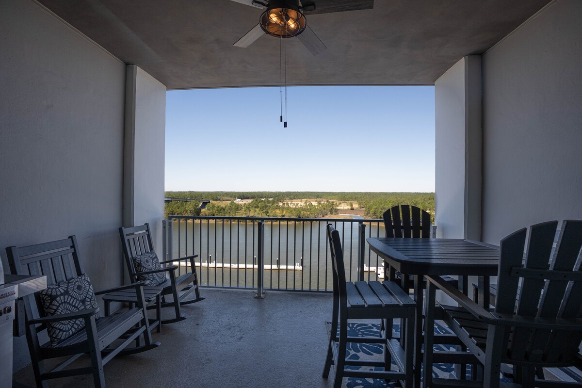 Skoðaðu okkur á YouTube, leitaðu að „Levin 's Bend at The Wharf Unit 915“. Komdu og njóttu dvalarinnar í paradísarsneiðinni okkar! Í þessari rúmgóðu 827 fermetra íbúð, sem er með útsýni yfir The Wharf Marina, er að finna öll þægindi heimilisins. Þessi íbúð er aðeins í fimm kílómetra akstursfjarlægð frá ströndum og er miðsvæðis í Orange Beach, The Wharf. Svæðið í kring býður upp á endalausa möguleika til skemmtunar. Opnaðu alwharf.com til að fá fulla skráningu á þægindum, áhugaverðum stöðum og viðburðum á næstunni.