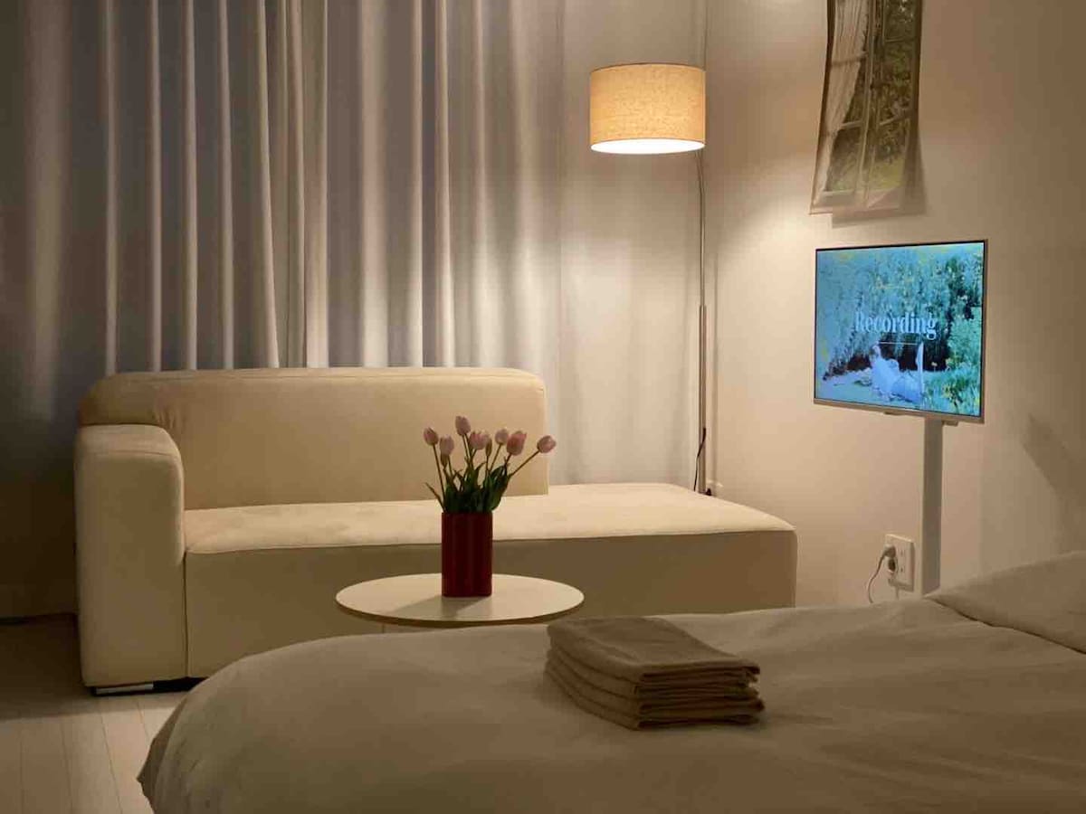 ✅Vinsamlegast lestu skráningarlýsinguna og notaðu✅ hana!! ❤️Þetta er rými sem hefur „reynt“ að vera sem trúr grunnatriðum „drekaflugna“! Valkostir ✅fyrir skráningu✅ -Samsung snjallsjónvörp - Háhraða aðstoð við þráðlaust net -Samsung system air conditioner -Samsung Styler -Drum þvottavél -Illy machine - Rafmagnsketill ✅Taka þátt í heimaeldhúsi✅ - Spaneldavél 2 -Krús/bjórkrús - Framplata/miðplata -1 pottur - Eldunaráhöld (ausa, tangir, hnífur, skæri) -Spónar og matarprjónasett (2 manneskjur) Það er einfalt að elda eignina🙏 okkar (Um ramen) Kannski, haltu þessu áfram! Steikingarpanna x Valkostir fyrir✅ salerni/sturtu✅ -Handþvottur -Tannbursti, tannkrem -Froðuhreinsun, klingandi olía -Sjampó/hárnæring/líkamsþvottur -Body lotion -Makeup bómull, bómullarþurrka - Hárþurrka, krullujárn