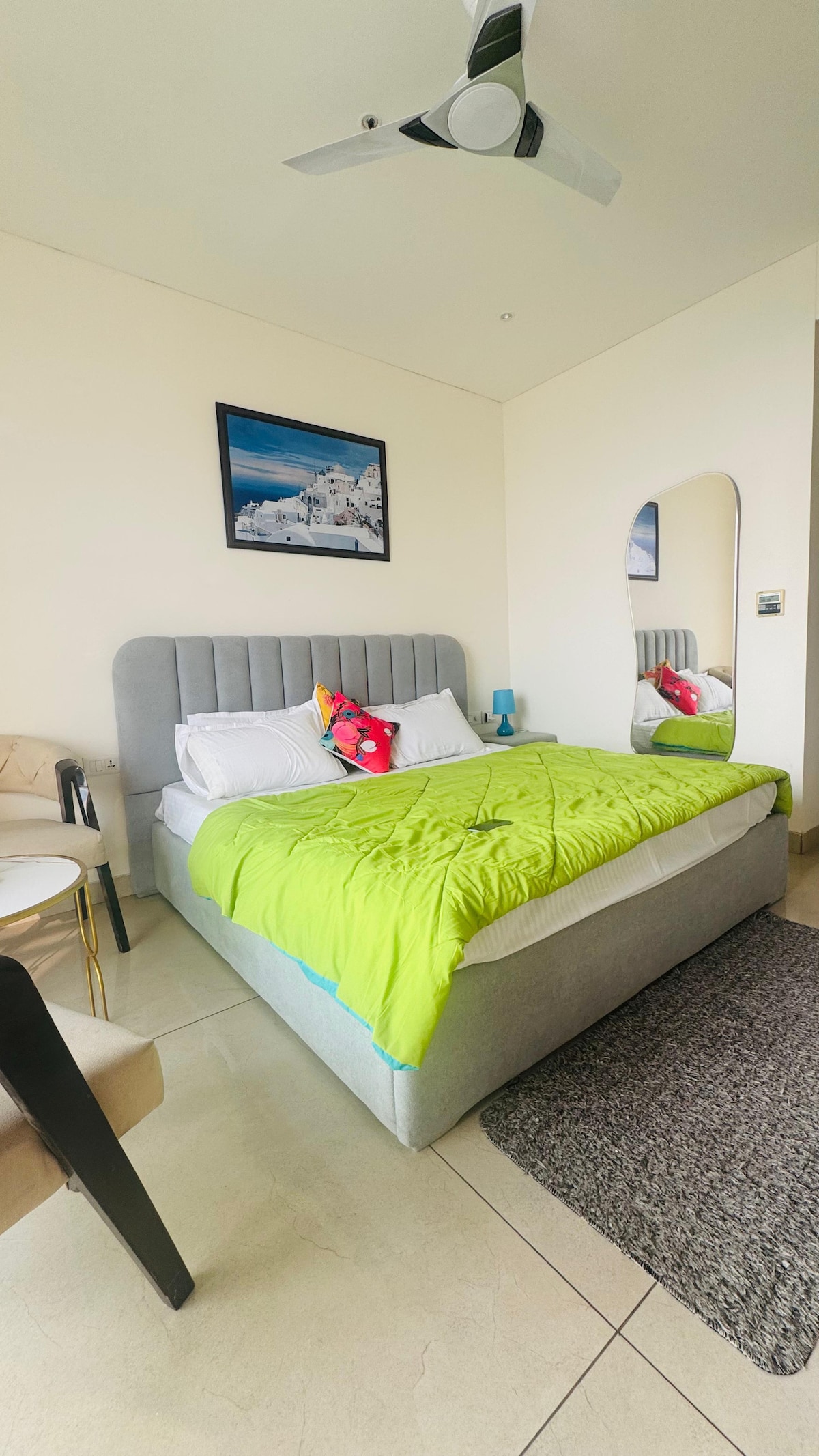 Welcome to our Zebra Chic Retreat! Immerse yourself in the sleek black and white decor, featuring zebra-striped accents and modern furnishings. This stylish studio offers a cozy bed, a comfortable seating area, and all the amenities you need for a relaxing stay. Located in a M3M Urbana, Sector 67 , you’ll have easy access to local attractions, dining, and shopping. Perfect for solo travelers or couples looking for a unique, monochrome escape. Book now for a memorable stay!