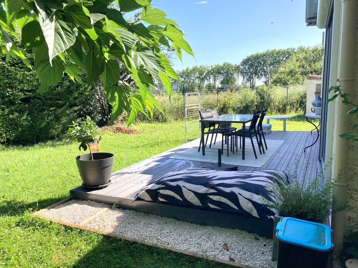 Á jarðhæð í fallegu þorpshúsi, algerlega sjálfstæðri íbúð með 80m² skógargarði. Hún er 70 m² að stærð og hefur verið endurnýjuð að fullu og felur í sér: - útbúna stofu/eldhús, - baðherbergi, - 1 svefnherbergi með hjónarúmi 140 cm, - 1 svefnherbergi með 2 einbreiðum rúmum 90 cm (hægt að flokka til að búa til stórt hjónarúm), - 1 lítið herbergi með einu rúmi 90 cm. Hámarksfjöldi er 4/5 manns. Bílastæði eru við götuna.
