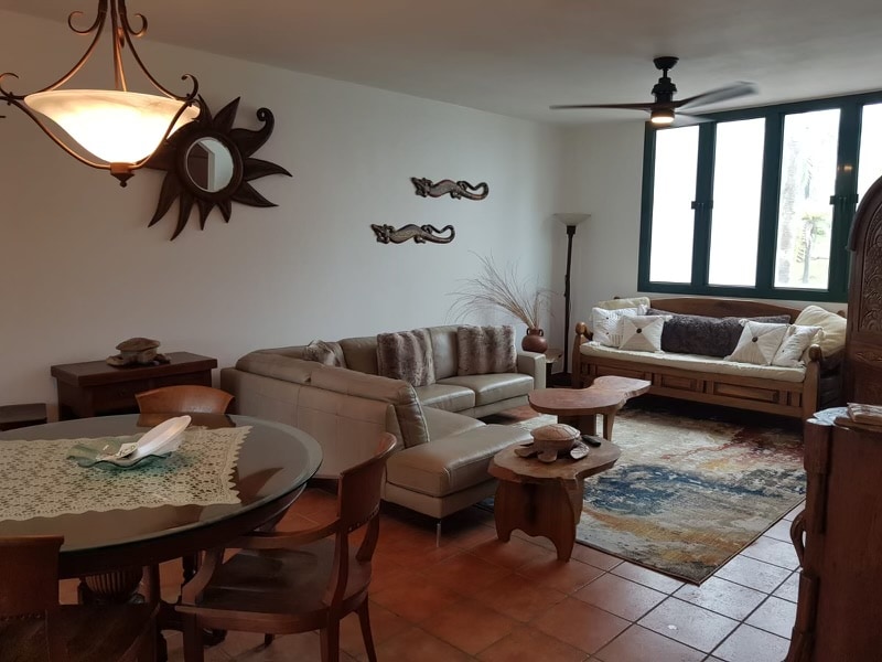 Beautifully decorated tropical and modern condo situated in a gated community . Only about 200 yards walk from the ocean . It has one KING bedroom and 2 FULL-size futons and 2 TWIN- size futons in main living area, therefore making room for up to 8 people to sleep comfortably. Unit located on 2nd. floor. No elevator. 2 Full bathrooms w showers ( no tubs), 55" UHD 4K flat screen TV, a/c in bedroom and living area, ceiling fans, wifi, cable, DVD Blu-ray player, full kitchen, washer/dryer, spacious balcony w partial view of ocean and pool , grill on the balcony, basketball court, tennis court and volleyball court close to the beach, GOLF COURSES nearby ( driving needed- closest one is 3 min away ( Wyndham Rio Mar Resort), 5 min away drive from EL YUNQUE RAINFOREST ( only rainforest US National Rainforest System) and Hacienda Carabalí where you can go on a horseback riding through the forest. It is less than 30 min drive to the BIOLUMINESCENT BAY in Fajardo and ferry boat to VIEQUES and CULEBRA ISLANDS ( latter one featured on The Travel Channel as having 2nd most beautiful beach in the world- Flamingo beach). This property is located about 40-45 min drive from Luis Muńoz Marín Intl. airport ( SJU) . KEEP IN MIND : HIGHLY RECOMMENDED TO RENT A VEHICLE at the airport in advanced. You WILL NEED a vehicle to go to grocery stores, restaurants and even nearby attractions. THIS PROPERTY HAS RECEIVED 5 STARS continuously by guests. It was previously listed under a different manager and account , therefore the reviews were lost. There are sets of sheets for the King bed and all the futons in the unit, plenty of pillows, as well as towels, beach towels, beach chairs, laundry detergent, dishwashing soap, liquid hand soap , tissue paper and paper towels. Dishwashing sponges and Handy wipes are discarded after each guest checks out. NO PETS PLEASE. NO SMOKING INSIDE THE UNIT. 24/7 SECURITY .