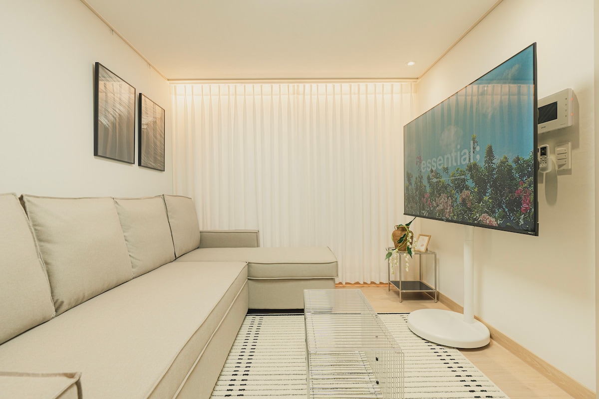 Þessi eign er staðsett í hjarta Seúl og býður upp á bæði þægindi og stílhreinan stíl. Þetta er ný bygging á seinni hluta árs 2023 og er hágæðaíbúðarhótel. Í boði er þvottavél og þurrkari, queen-size rúm og svefnsófi og hágæða eldhúsbúnaður með vatnshreinsiefni og kaffivél. Eignin er rúmgóð og innréttingarnar eru íburðarmiklar svo að við höfum séð til þess að þið njótið alls hins besta í afslöppuninni. Við munum gera okkar besta til að láta fara vel um þig meðan á dvöl þinni stendur.