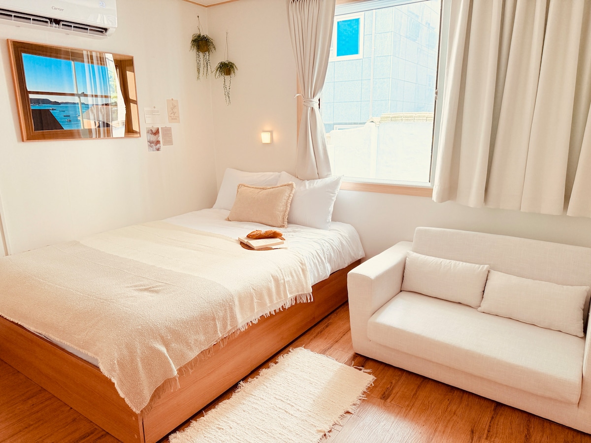 Ahnuk, Seúl Seongsu, sem er aðeins þrjár stöðvar frá Gwi-stöðinni, er í 3 mínútna göngufæri að morgni. Ég sit á kaffihúsinu í ristunarstofunni með augu enn hálfsofandi og fæ mér kaffibolla. Á götunni tekur þig á móti verslanir og gallerí sem höfða til skynfæranna og þú getur farið í léttan göngutúr til að koma deginum í takt. Að eftirmiðdegi fer ég yfir Han-ána og held til Jamsil. Flókið rými með stórverslunum, sýningum og útsýni yfir Han-ána. Þetta er staðurinn þar sem þú getur fundið orku Seúl næst. Og að kvöldi til verður það aftur að rými til að skipuleggja daginn. Að skilja eftir glitrandi borgarmyndina í smá tíma, Staður þar sem hlýir viðartónar og minimalískt grátt gólfefni bjóða þig velkominn undir rólegri lýsingu. Gistiaðstaðan er í þriggja mínútna göngufæri frá neðanjarðarlestinni og það eru veitingastaðir og matvöruverslanir í nágrenninu svo að jafnvel þeir sem heimsækja Seúl í fyrsta sinn geta gist áhyggjulausir. Umfram allt munum við gera dvöl þína betri með hreinni eign og skjótum viðbrögðum. Ef þú vilt upplifa ótrúlegan dag í Seúl skaltu hefja ferðalagið hér. Á þessum notalega stað. 😉 * * * Venjuleg sóttkví * * *