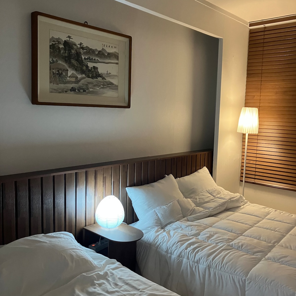 Góða kvöldið! Þetta er notaleg gisting sem mælt er með fyrir ferðamenn í Damyang:) Þetta gistirými er staðsett nálægt Damyang Noodle Street og rúmar allt að 4 manns. Aukarúmföt (yfirdýna, sæng og koddi) eru til staðar fyrir þrjá eða fleiri. Hægt er að komast fótgangandi að öllum ferðamannastöðum í nágrenninu og því tekur um 3 mínútur að ganga að Noodle Street, 8 mínútur að Gwanbangjerim og 10 mínútur að Juknokwon. Stutt er í kaffihús og matvöruverslanir svo að það er auðvelt í notkun. Ókeypis bílastæði er í boði á almenningsbílastæði Noodle Street í innan við 1 mínútu göngufjarlægð þegar þú notar eigin bíl.