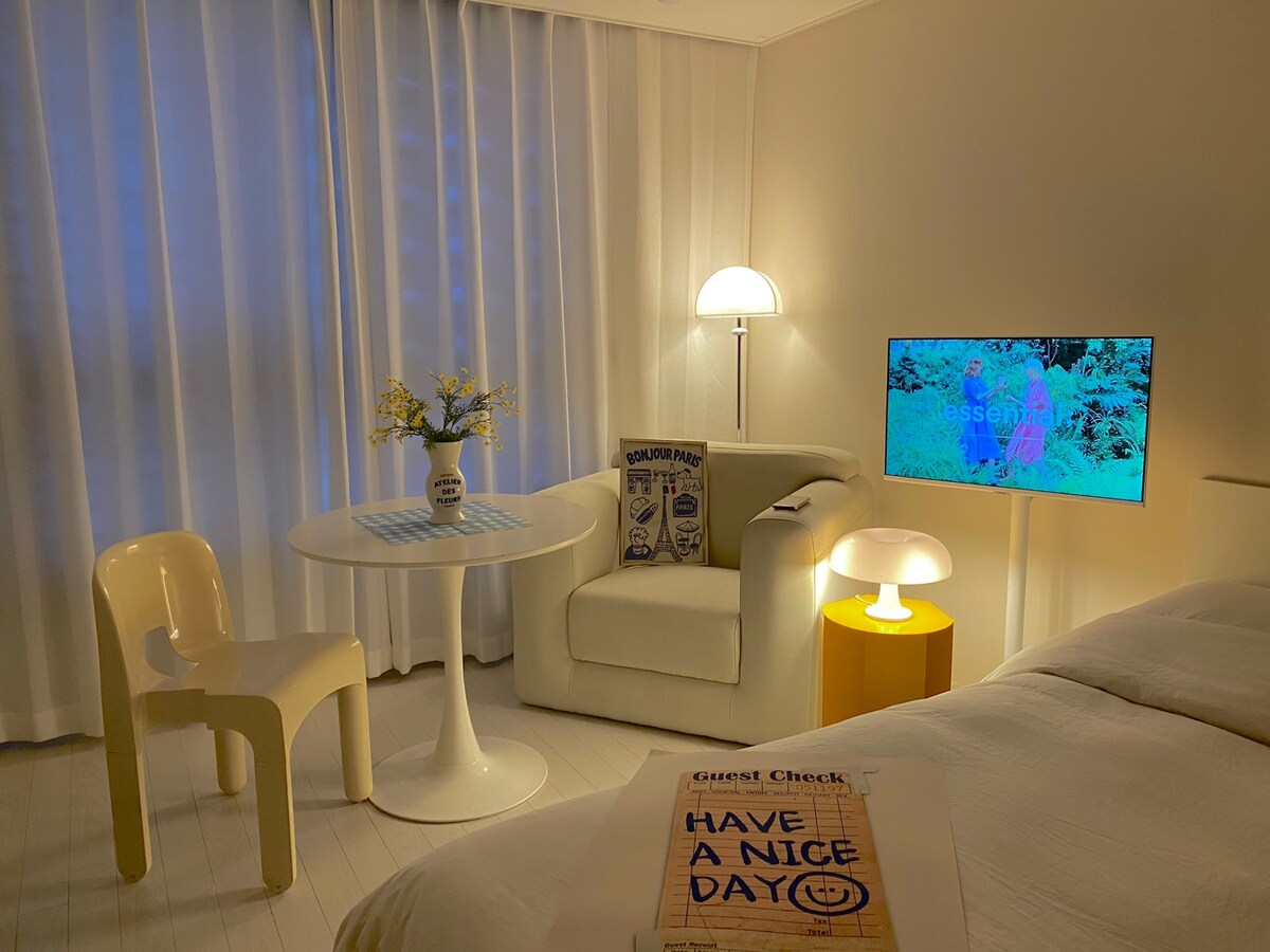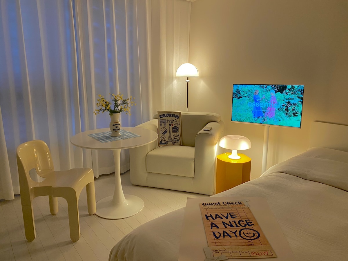 안녕하세요 :) 만나서 반갑습니다! 저희는 도심 속 진짜 휴식을 위한 "𝐒𝐓𝐀𝐑 𝐁&𝐁 𝐑𝐄𝐒𝐈𝐃𝐄𝐍𝐂𝐄" 입니다🤗 🍀숙소 기본 옵션✨ - 고급 호텔 침구류 세트 완비 - 삼성스마트티비 (넷플리스,티빙,디즈니플러스,미러링 기능 사용가능) - 드럼세탁기(세제 요청 시 무료 제공) - 삼성 스타일러 - 커피머신 (커피캡슐제공) 🍀주방 기본 옵션🍽️ - 2구 인덕션 - 물컵,와인잔 - 커피포트 - 수저 및 나이프 - 냄비(소),기본 그릇,접시 *모든 옵션은 2인 기준입니다! 저희 숙소는 간단한조리만 가능하니 꼭 참고해 주세요 (❌삼겹살,스테이크,기름진 음식,생선류❌) 🍀화장실 및 샤워실 기본 옵션🫧 -수건(1인당2장 제공) -폼클렌징 -삼푸,린스,바디워시,드라이기 -기본어메니티 (칫솔, 치약, 비누, 바디스폰지, 면도기, 화장솜, 면봉)