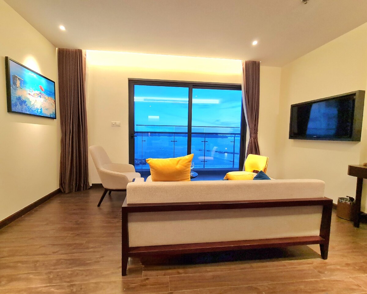 Það kemur þér á óvart að fara inn í stofuna sem opnast fyrir framan þig bláa Ha Long Bay og fallegu náttúruperluna. Þessi háklassa heimagisting er staðsett í 5 stjörnu lúxus hótelbyggingu í miðborg Ha Long, nálægt ströndinni. Það er nálægt öllum stöðum sem þú vilt heimsækja, það eru margir áhugaverðir áfangastaðir sem þú getur upplifað og skoðað.