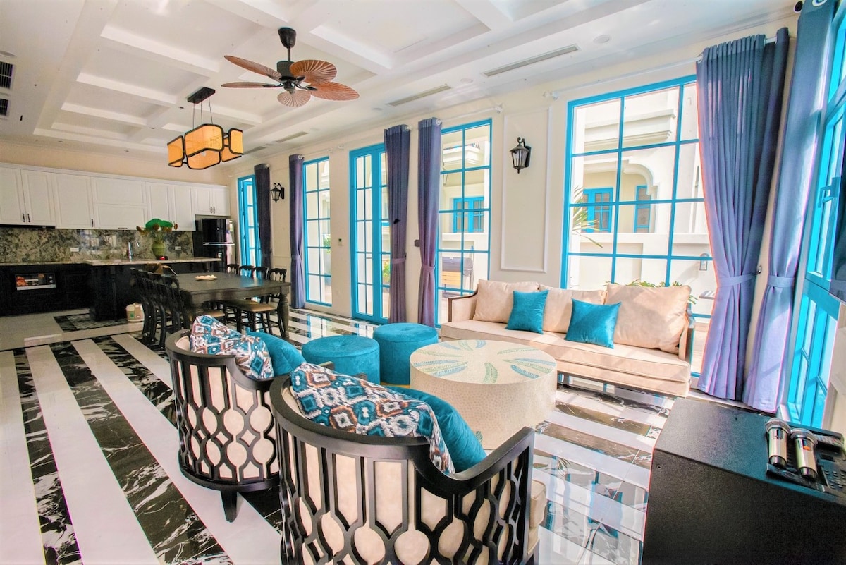 Step into your own villa in the heart of Ha Long. 🌟With three en-suite bedrooms, a private pool, and a lush garden, it’s a retreat designed for both relaxation and connection. 💦 Unwind in the jacuzzi or sauna, gather in the spacious living room, or cook together in the fully equipped kitchen. 🌈 Families will love the Kids’ Room, and the elevator makes every floor—spa room and laundry included—easily accessible. ✨Just minutes from the beach, cafés, and top attractions!