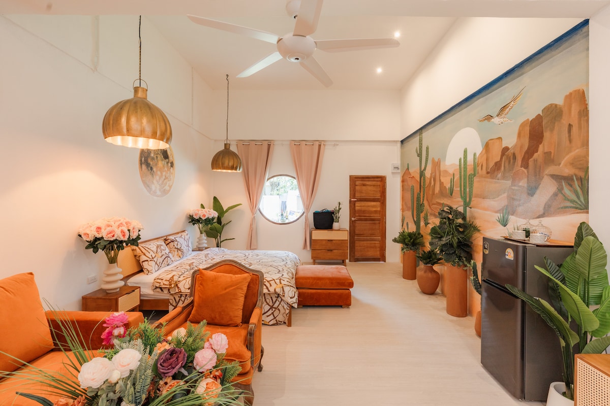 【卡马拉海滩私享寓所】 在这座步行可以到达卡马拉海滩的现代风公寓中,开启惬意假期。举步即达的黄金位置让您随时拥抱细软沙滩,而室内以暖色调灯光与简约设计营造出温馨氛围【智能旅居空间】 配备快速私人wifi/智能电视与独立空调系统,无论是窝在沙发追剧还是在工作区处理事务都倍感舒适 【生活便利圈】 步行 5 分钟范围内云集 TOPS、BigC、711、VILLA Market 四大商超,每日新鲜食材信手拈来。Kamala 夜市的烟火气与海滩酒吧的微醺氛围交相辉映,从泰式海鲜到国际美食,全天候满足味蕾需求。 房源附近步行500米内有多家餐厅,药店,711,超市,机场巴士 靠近旅游游玩项目和多项本地特色体验项目打卡景点。 【适合儿童】 儿童浅水泳池区域,泳池滑梯。儿童游乐室,儿童的专属空间 【设施齐全】 设施齐全的免费健身房,30米长的无边泳池。 【全景阳台时光】 站在全景观景阳台上,270° 视野将海与山林风光尽收眼底。晨起迎接绯红日出为海面镀上金辉,傍晚静候夕阳将云朵染成蜜糖色,让每个日夜都以诗意收尾。 (提供免费私人快速 WiFi / 线上管家服务/短期免电费{详细请查看房源详情了解}。