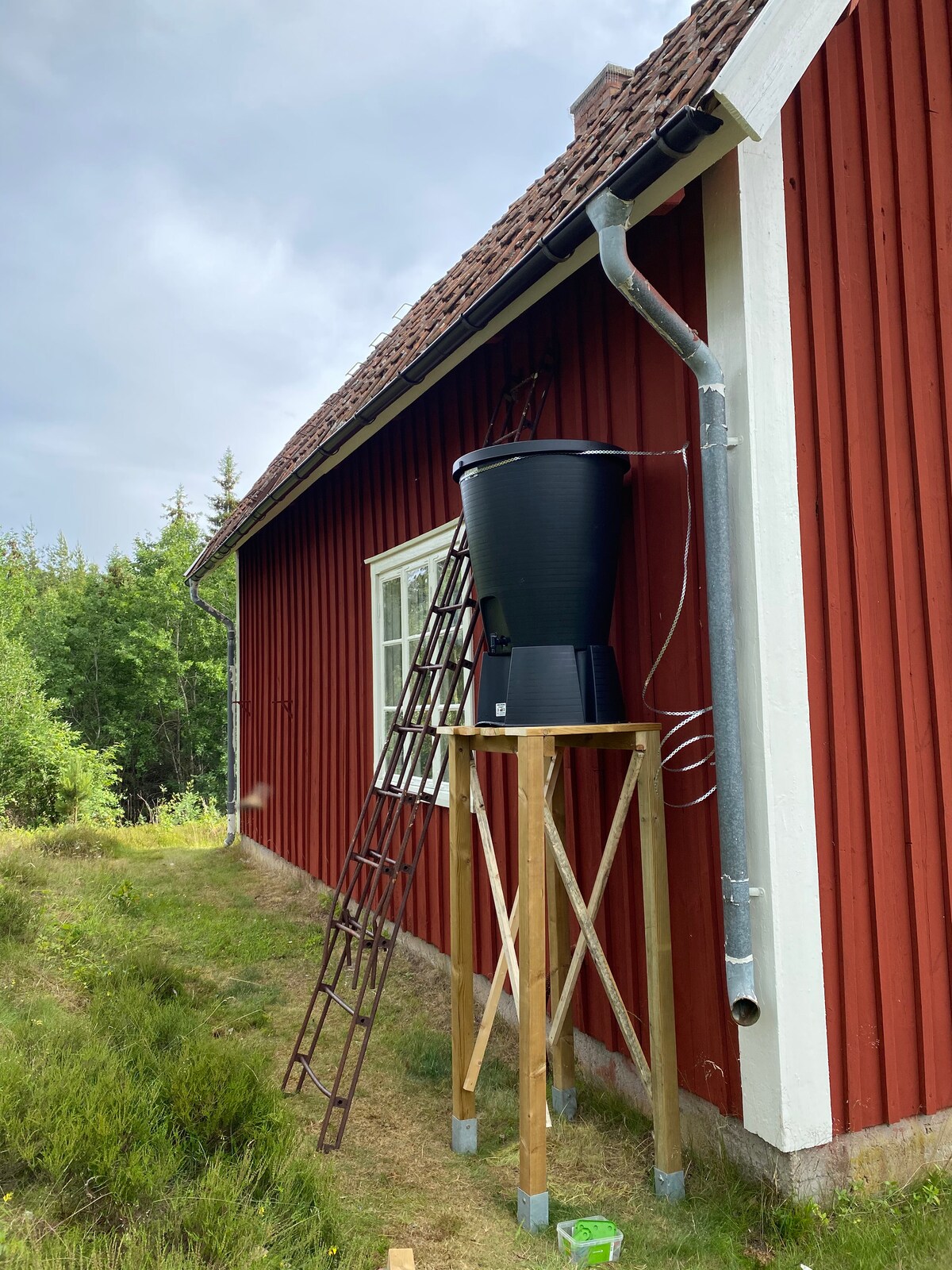 Welcome to enjoy a wonderful retreat in the forest in this newly renovated cottage house with a modern touch. You will enjoy a real nature experience with your own well, and light and a small fridge with electricity from solar panels. There is also running water in the kitchen (from a big tank outside), a gas stove or if you would like the real way, a stove with wooden fire. Downstairs you find the kitchen, a common space with a fire place and upstairs two bedrooms. The toilet you find outside.