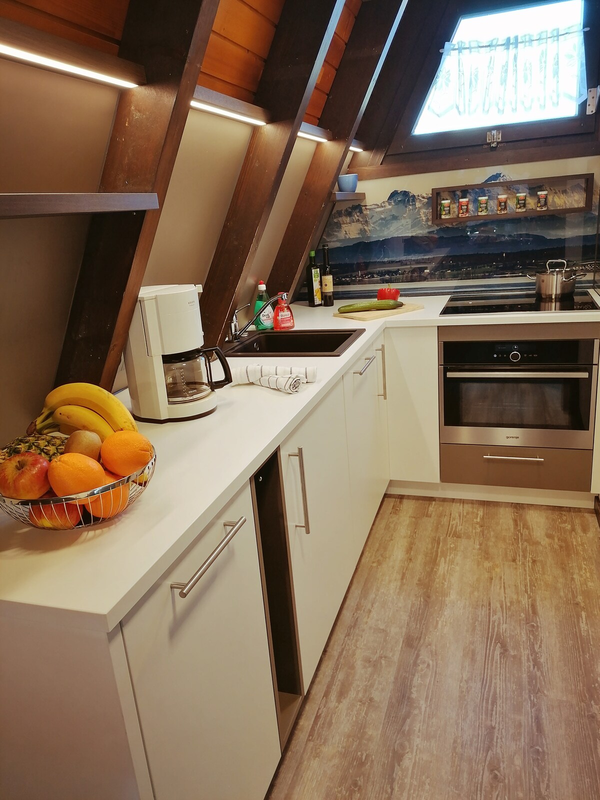 Íbúðin er nýuppgerð, mjög björt í gegnum stóru gluggana og nútímalega innréttuð. Stofan er á háaloftinu og er með fjalla- og vatnsútsýni. Rútan stoppar í áttina að Friedrichshafen og í áttina að Meersburg/Überlingen sem eru rétt fyrir utan dyrnar. Vatnið er í 5 mínútna göngufjarlægð og útisundlaugin er í 3 mínútna göngufjarlægð. Það eru nokkrir veitingastaðir (hótel, tælenskt snarl, pizzeria o.fl.) á svæðinu og allt í göngufæri.