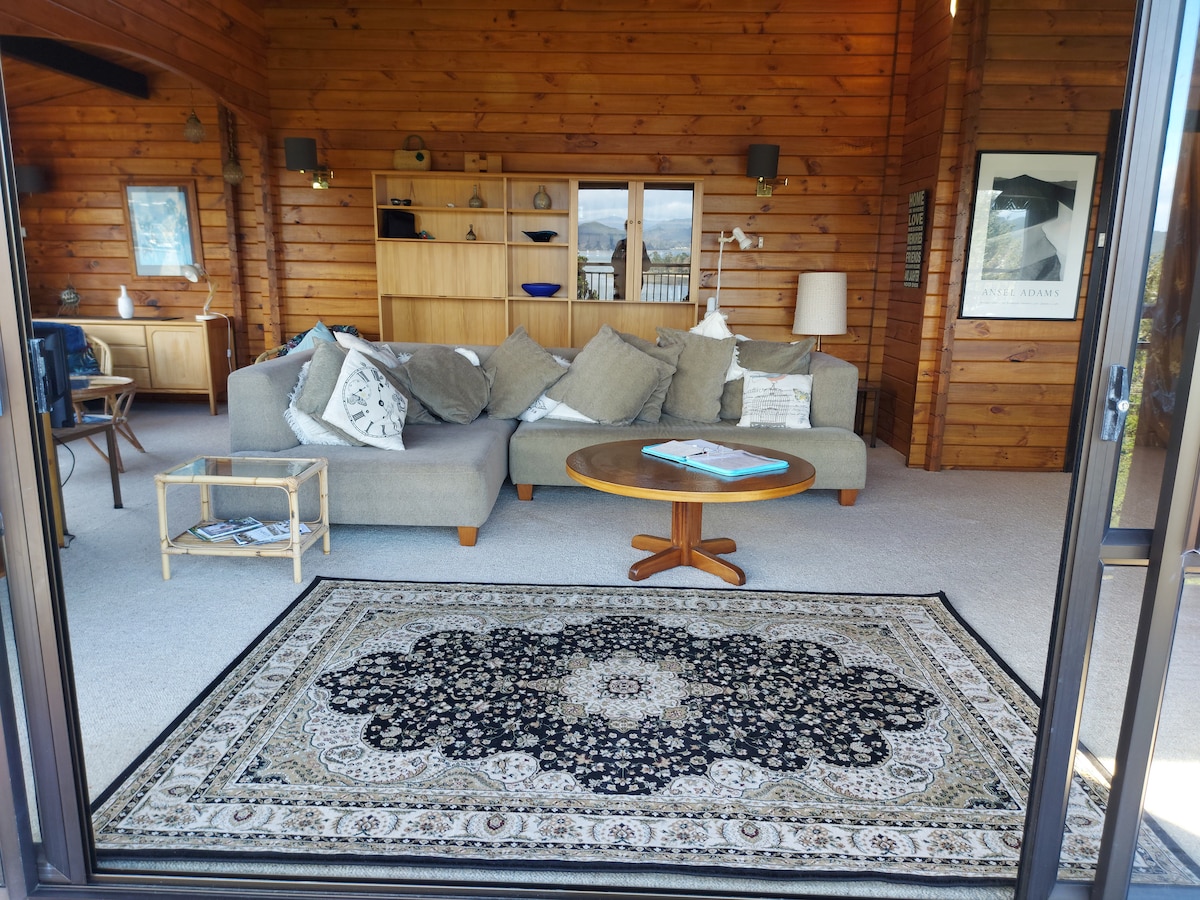 Ótrúlegt útsýni yfir vatnið frá nýbyggðu, sjálfstæðu orlofsheimili við Robinson Road Estuary, Whitianga. Valkosturinn með 2 svefnherbergjum getur tekið vel á móti allt að fjórum fullorðnum. Aðstaða fyrir gesti er á jarðhæð. Aðal svefnherbergið er með útsýni yfir garðinn/bakgarðinn. Setustofa og borðstofa, útsýni yfir vatn. Svefnherbergin tvö og neðri hluti hússins eru einungis til afnota. Þú hefur aðeins afnot af þeim til að fara inn um rennihurðirnar að framan og aftan. Það eru örugg bílastæði utan götunnar fyrir bíla og báta í bakgarðinum.