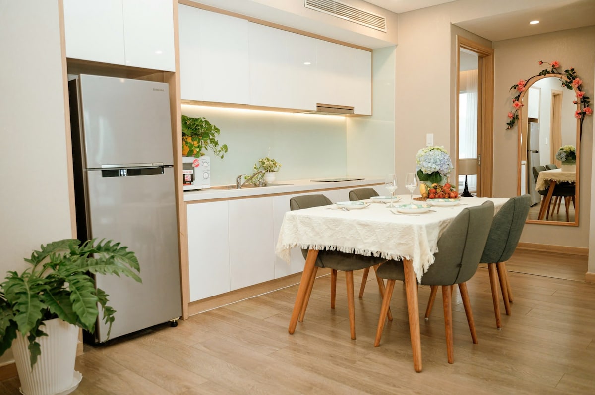 F-Home Building er hágæðaíbúðasamstæða sem er vinsæl meðal útlendinga í Da Nang. Það er staðsett í hjarta borgarinnar, nálægt Han-ánni, umkringt matvöruverslunum, líkamsræktarstöðvum, veitingastöðum, kaffihúsum og fleiru. Frá byggingunni: • 3 mínútna göngufjarlægð frá Han-ánni sem liggur að Han-markaðnum, Drekabrúnni, göngugötunni og ýmsum ferðamannastöðum við ána. • A 15-minute drive to My Khe Beach, one of the world's most beautiful beach, ideal for sports and Recreation.