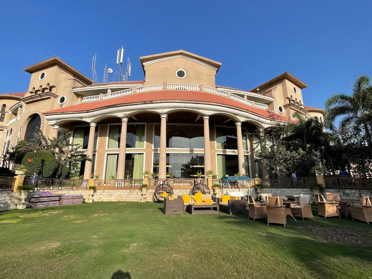 Stökktu á nútímalegt heimili okkar í spænskum stíl, í aðeins 35 mínútna fjarlægð frá Surat. Fullbúin húsgögnum með þráðlausu neti, sjónvarpi, þvottavél og eldhúsi er fullkomin fyrir fjölskyldur, vini eða stafræna hirðingja. Njóttu klúbbhúss með líkamsræktarstöð, sundlaug, látlausri á og íþróttaaðstöðu. Gjaldskyldur aukabúnaður felur í sér öldulaug, keilu og heilsulind. Við tökum vel á móti gestum sem virða gildi samfélagsins. Slakaðu á og upplifðu fullkomna blöndu af kyrrð og þægindum. Bílastæði eru til staðar.