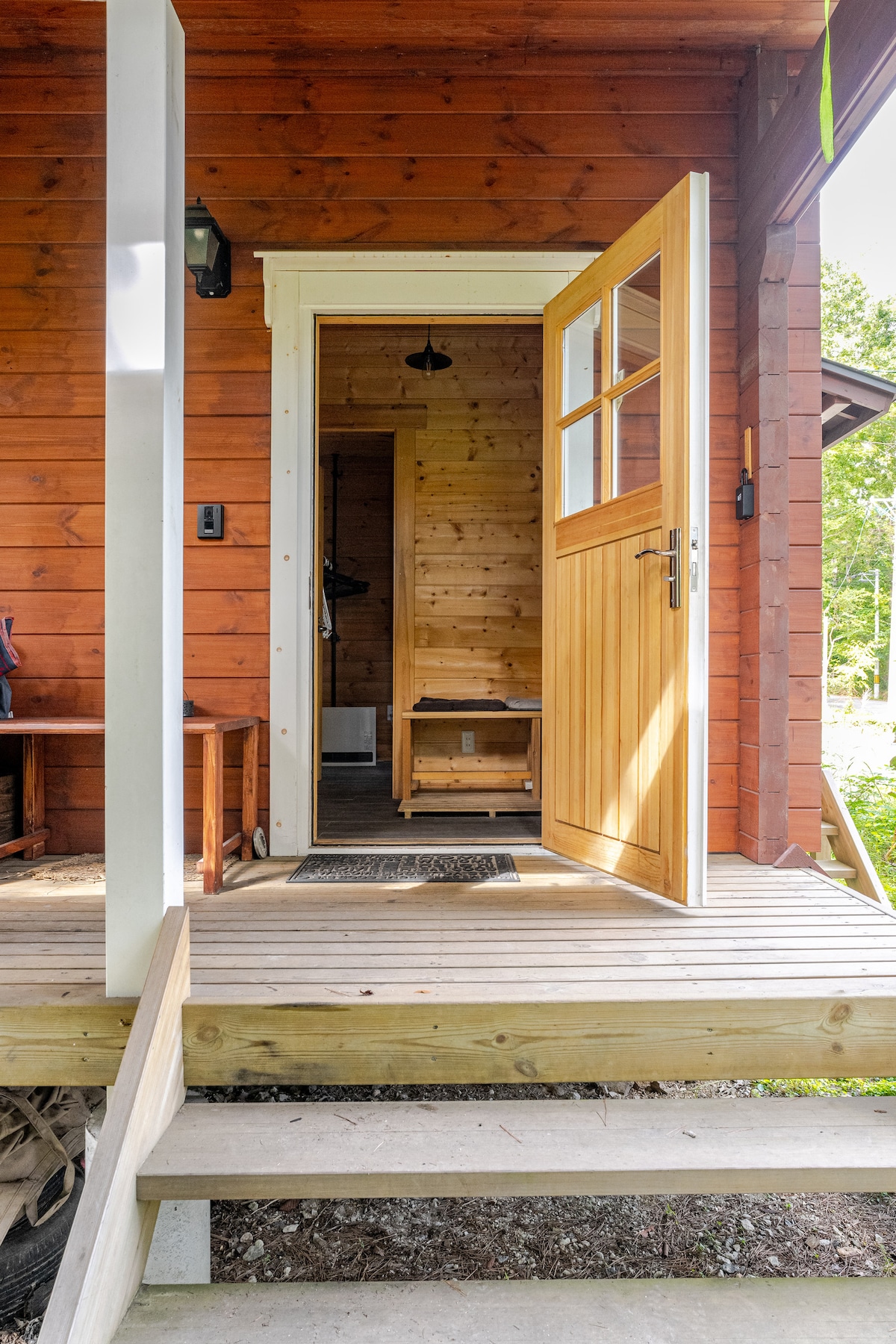 ✨ Kynnstu fullkominni blöndu nútímalegrar hönnunar og kyrrlátrar náttúru í þessum heillandi og notalega kofa í skógum Nagano. Þessi kofi er endurhannaður af þekktum innanhússhönnuði í Nagano sem fyrirmyndarheimili og býður upp á einstaka gistingu með glæsilegum innréttingum. Þessi kofi hefur allt til alls hvort sem þú ert að leita að kyrrð, ❄️skíða á fræga púðursnjónum í Nagano (aðeins í 15 mín. akstursfjarlægð) eða heimsækja sögufræga helgidóma (30 mín.). Útilegu- og vatnamiðstöð er í aðeins 5 mínútna fjarlægð fyrir útivistarfólk!✨