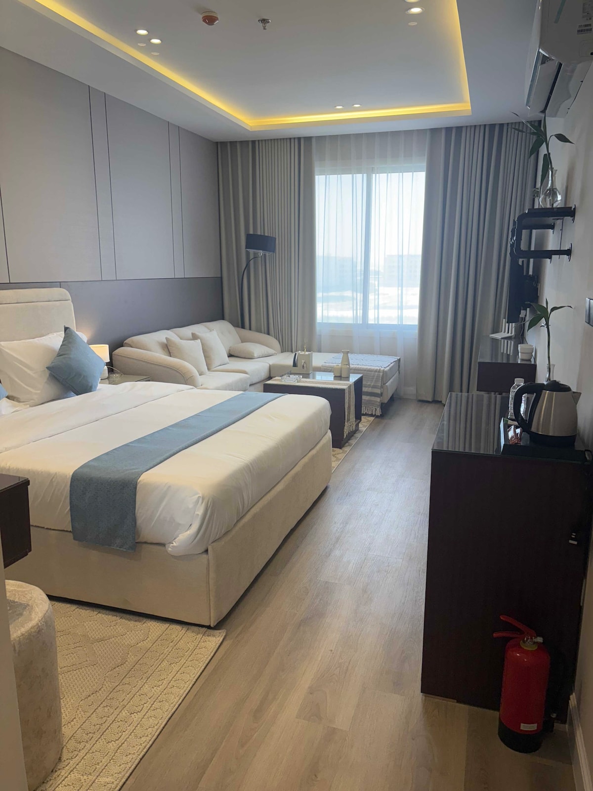 At QR we offer you a luxurious and quiet accommodation designed in a luxurious way that suits you QR is characterized by: - Its proximity to services and all tourist and entertainment places, - It is entered securely through self-registration. - It provides all comfort and relaxation services - TV screen with programs such as Netflix and Shahid - Refrigerator and kettle - Bathroom with accessories towels / shaving tools / shampoo / soap / hair dryer.