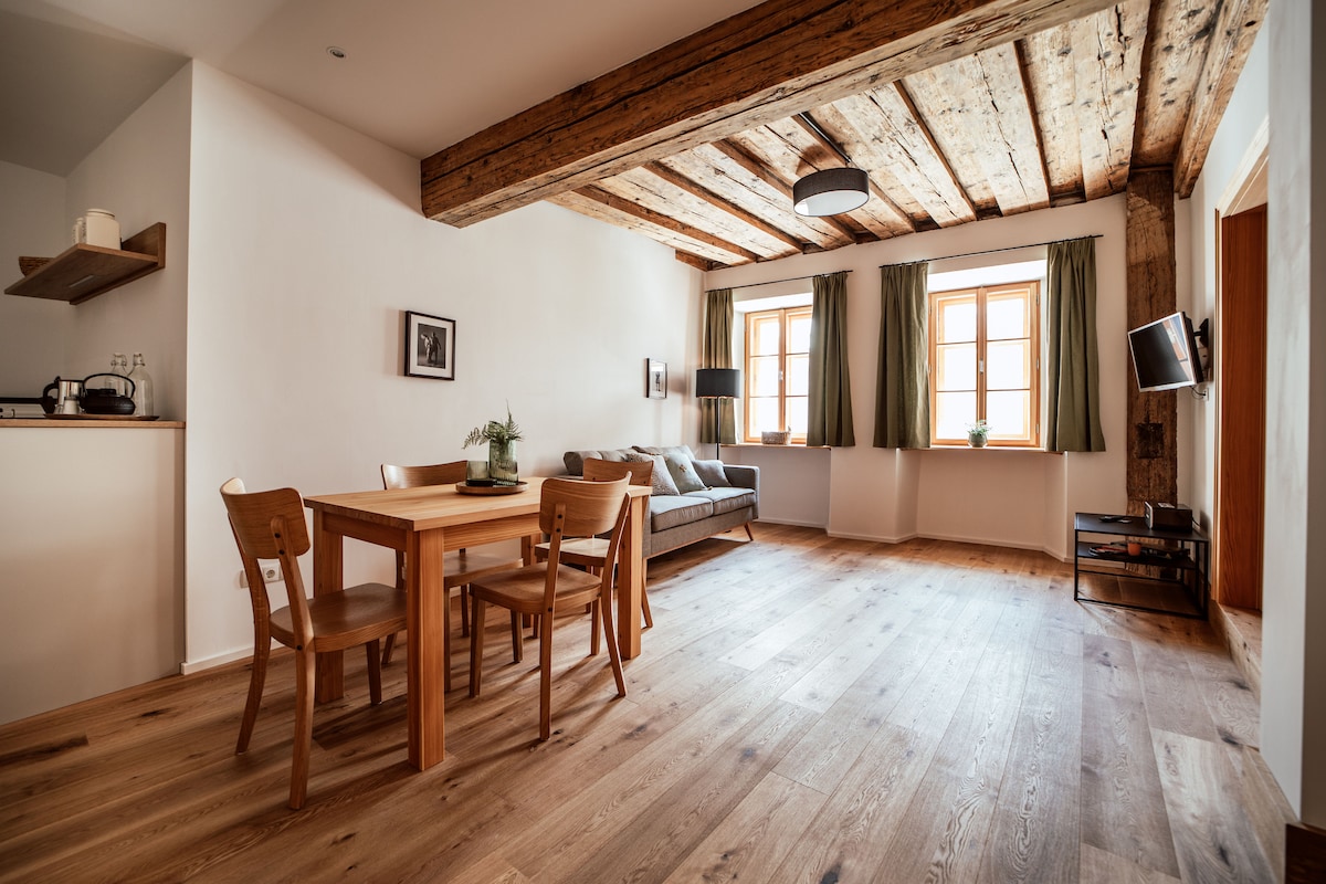 Gestaíbúðin okkar er á fyrstu hæð í gömlu bæjarhúsi í hjarta Hallein og býður upp á fallegt útsýni yfir göngusvæðið. Verslanir, bakarí, kaffihús, ísbúðir og veitingastaðir með fallegum görðum fyrir gesti má finna nánast fyrir dyrum. Salt- og keltnesk borg Hallein frá miðöldum er talin „litla systir“ menningarborgarinnar Salzburg, sem auðvelt er að komast með S-Bahn á um 20 mínútum.