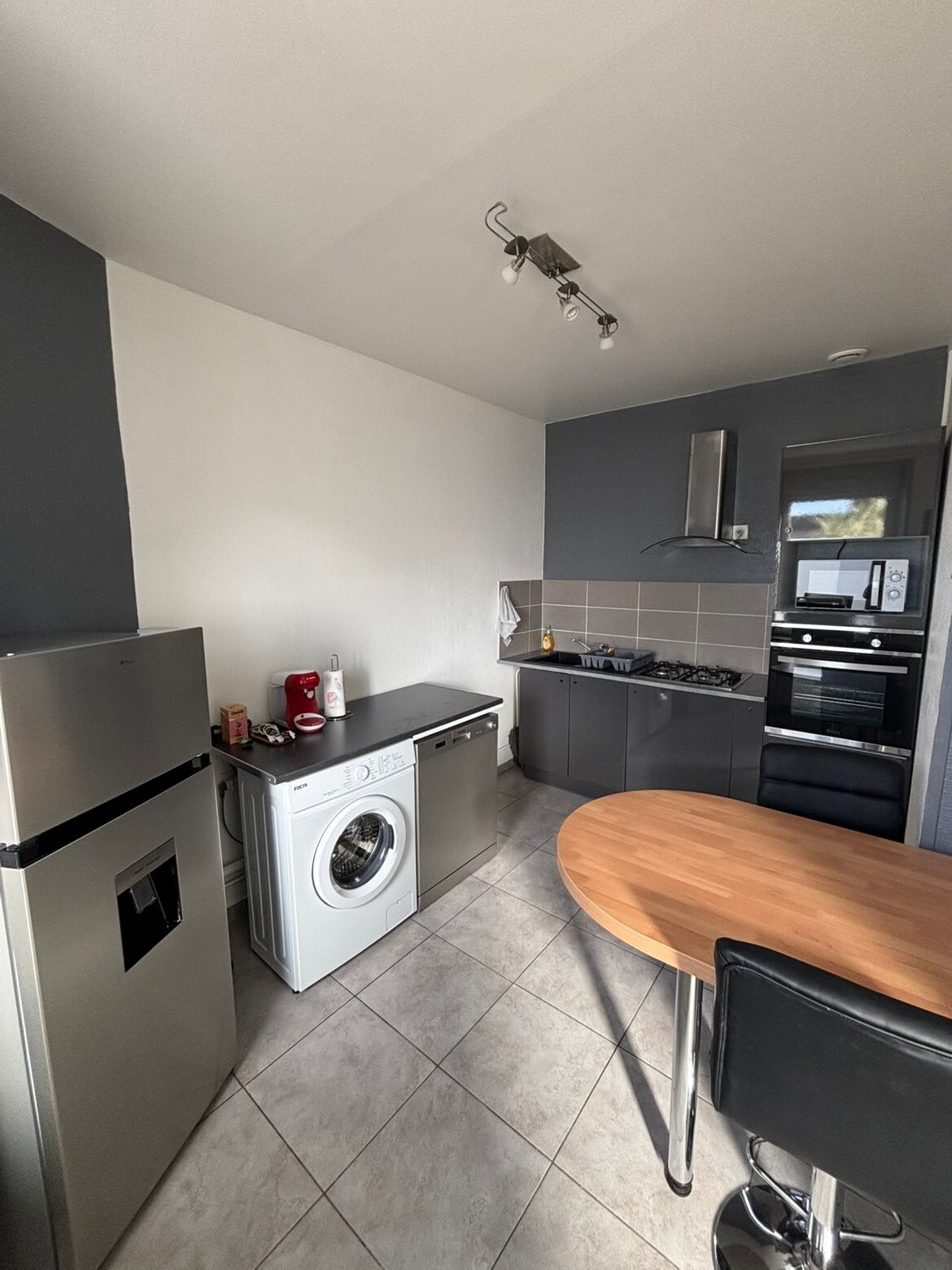 Kynntu þér þægilega og hagnýta íbúð sem er tilvalin fyrir fjölskyldu eða tvo vinnufélaga í vinnuferð. Stóra stofan er með vinalegt slökunarsvæði og fullbúið eldhús til að útbúa máltíðir Þú ert með tvö rúmgóð svefnherbergi: • eitt svefnherbergi með 140 × 200 rúmi • svefnherbergi með 160 × 200 rúmi Þú munt einnig njóta aðskilins salernis, baðherbergisins búins baðkeri Róleg, þægileg og vel úthugsuð gisting fyrir friðsæla dvöl