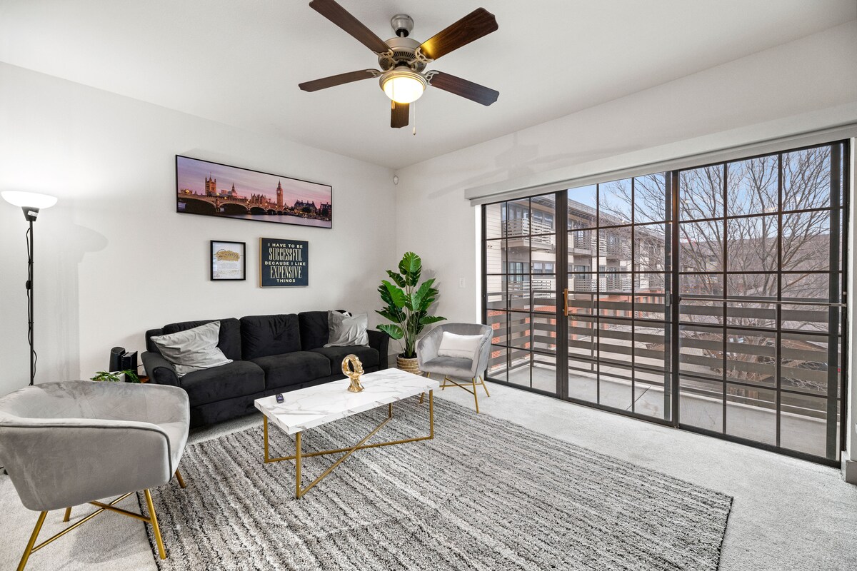 Gistu í glæsilegri, nútímalegri íbúð með einu svefnherbergi aðeins tveimur mínútum frá Sundance-torginu í hjarta Fort Worth. Njóttu stórfenglegs útsýnis yfir miðborgina, þaksveröndar með billjardborði, líkamsræktarstöðvar, eldstæði og setustofur. Þetta nýja íbúðasamfélag býður upp á öruggt og rólegt umhverfi með ókeypis bílastæði og þvottavél/þurrkara í íbúðinni. Fullkomið fyrir vinnu- eða frístundarferðamenn sem leita að stíl, þægindum og óviðjafnanlegu þægindum.