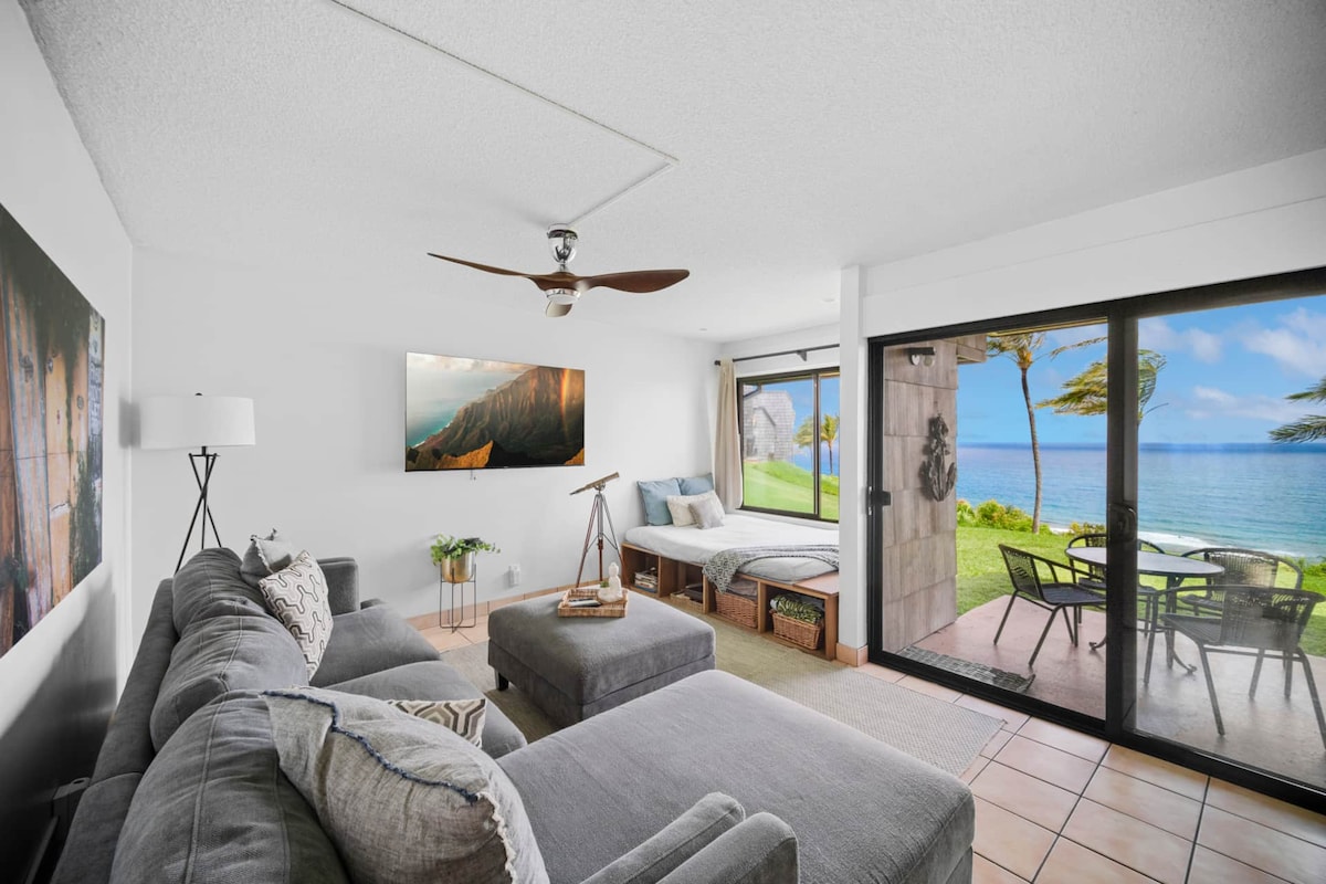 Modern fully remodeled 1+1 with AC. This retreat offers a contemporary living space with front row seats to the magical Anini beach and light house. Relax in the comfortable living or seat in the lanai and view whales and dolphin pass by.Your within minutes of Hanalei Bay, Kilauea Lighthouse, fabulous restaurants, hiking, surfing, golfing and many more. back and relax in this calm, stylish space. Sealodge C5